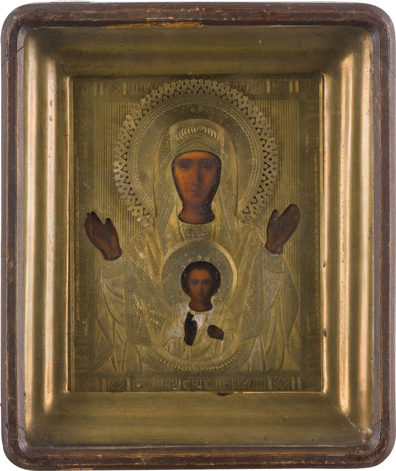 KLEINE IKONE MIT DER GOTTESMUTTER DES ZEICHENS (ZNAMENIE) MIT OKLAD IM KIOT