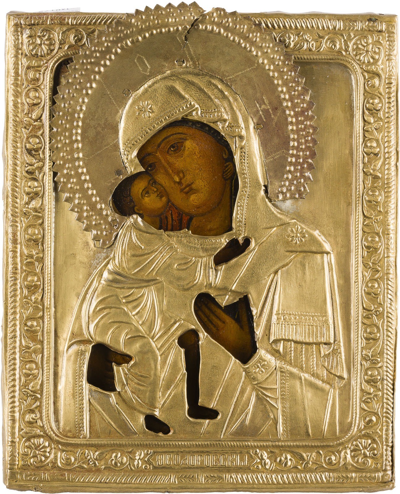 KLEINE IKONE MIT DER GOTTESMUTTER 'FEODOROWSKAJA' MIT OKLAD