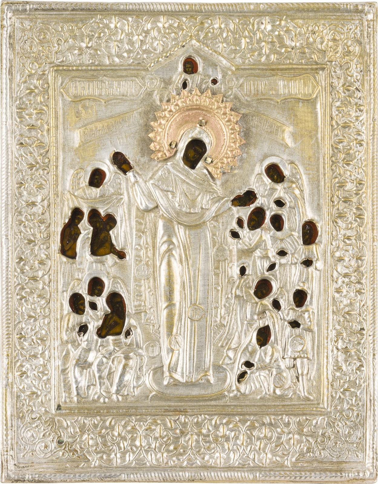KLEINE IKONE MIT DER GOTTESMUTTER 'FREUDE ALLER LEIDENDEN' MIT DEN MÜNZEN