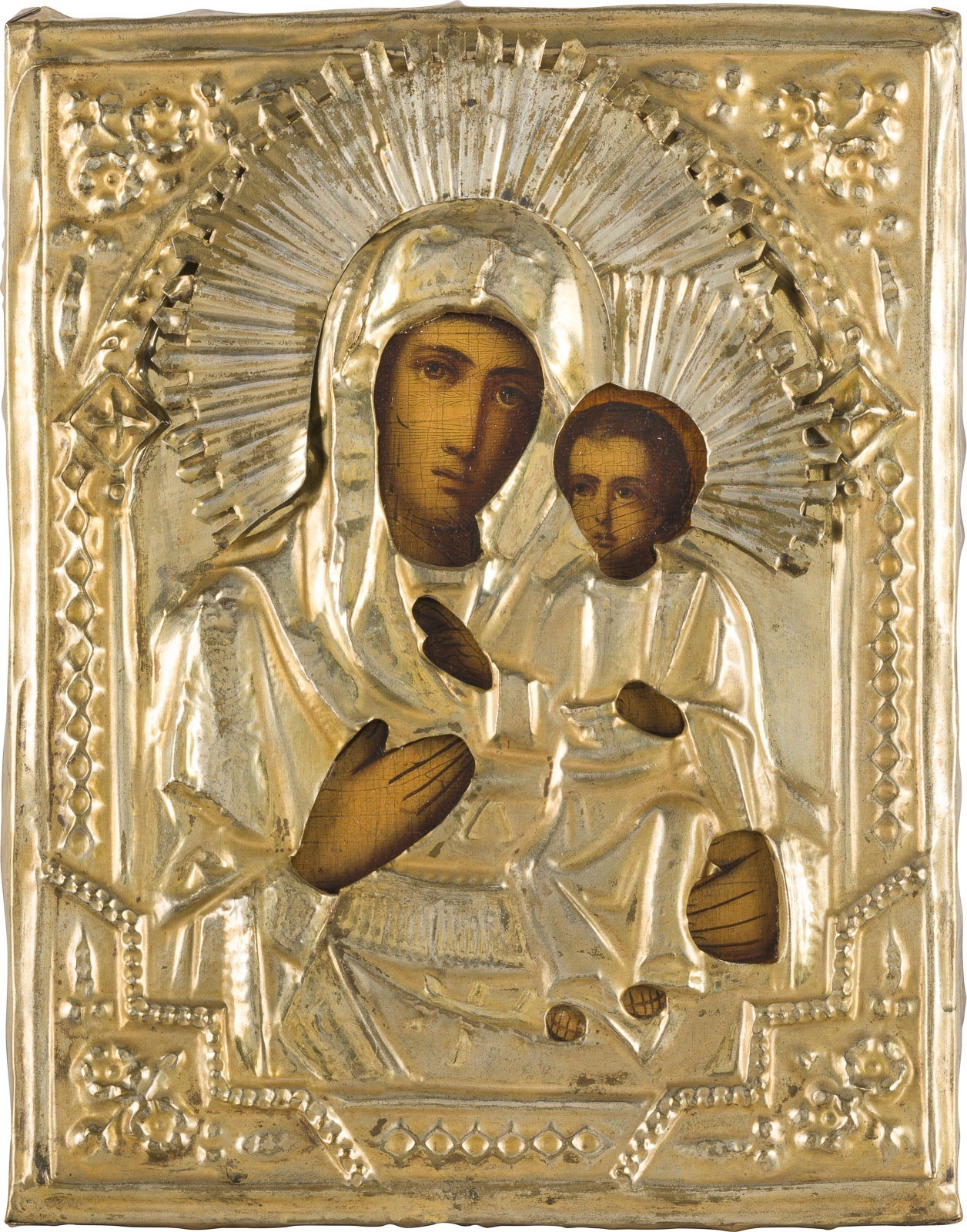 KLEINE IKONE MIT DER GOTTESMUTTER 'IWERSKAJA' MIT OKLAD