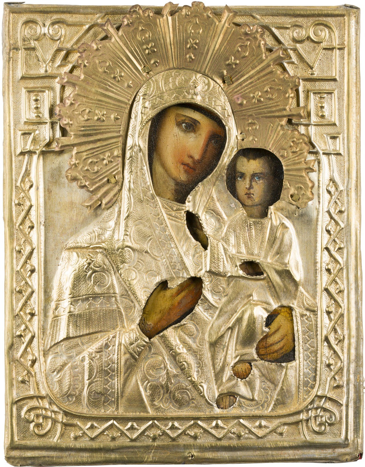 KLEINE IKONE MIT DER GOTTESMUTTER 'IWERSKAJA' MIT OKLAD