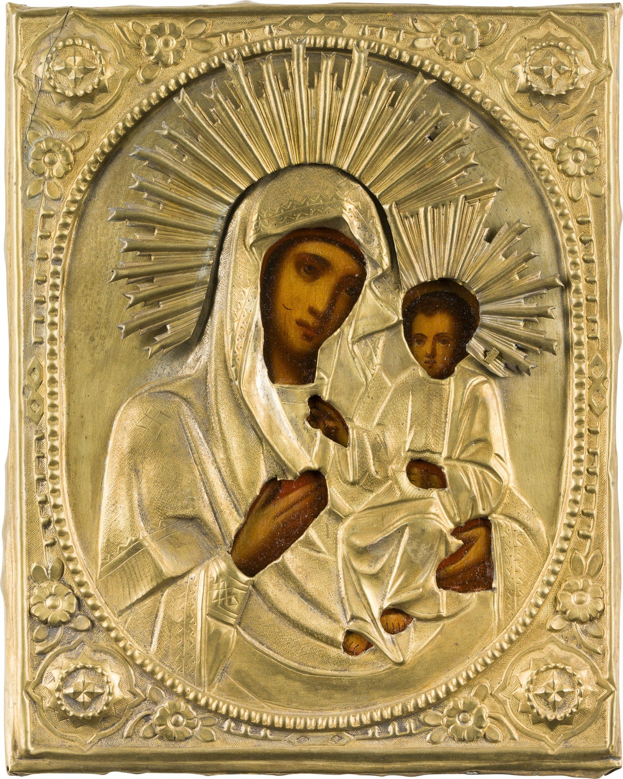KLEINE IKONE MIT DER GOTTESMUTTER 'IWERSKAJA' MIT OKLAD