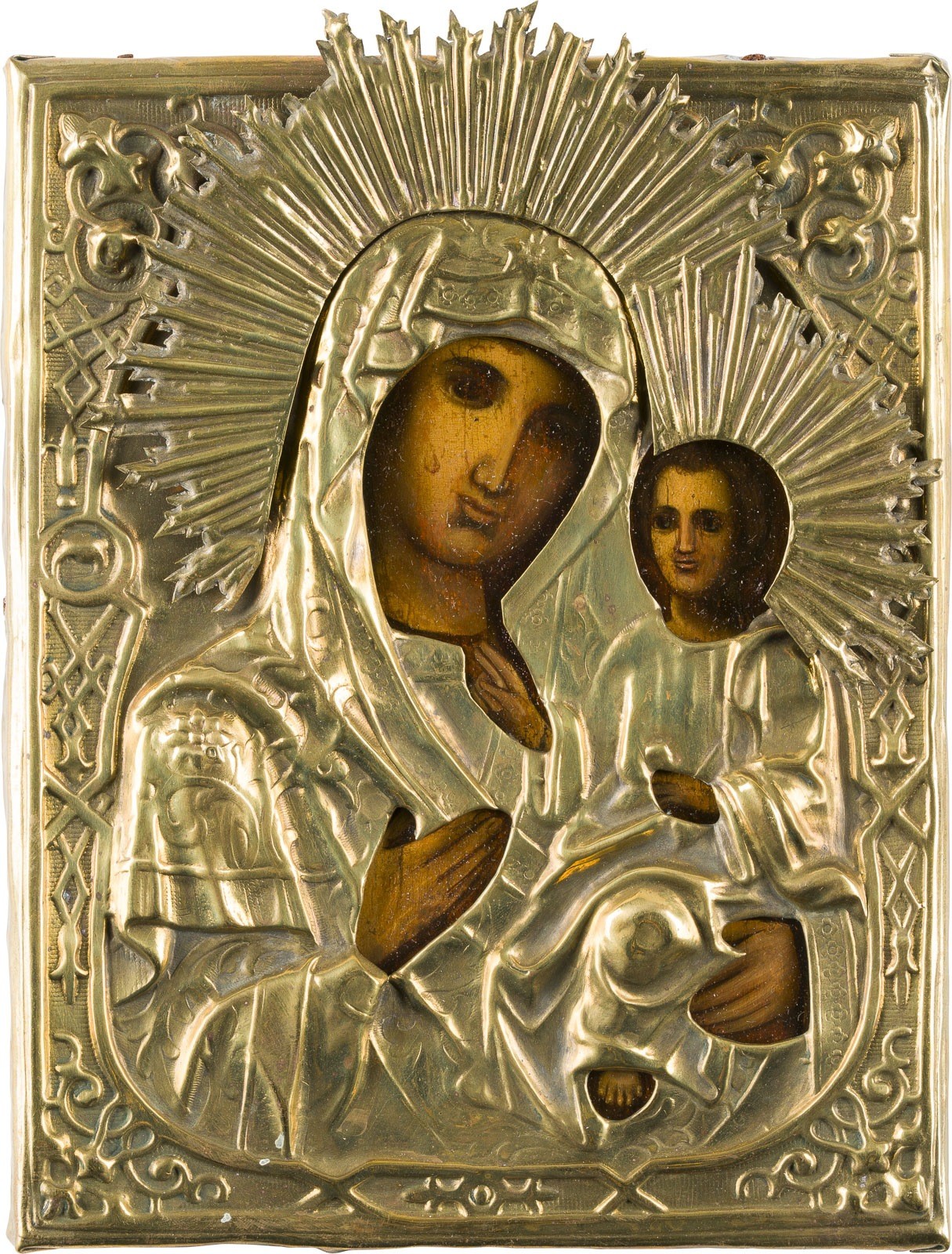KLEINE IKONE MIT DER GOTTESMUTTER 'IWERSKAJA' MIT OKLAD