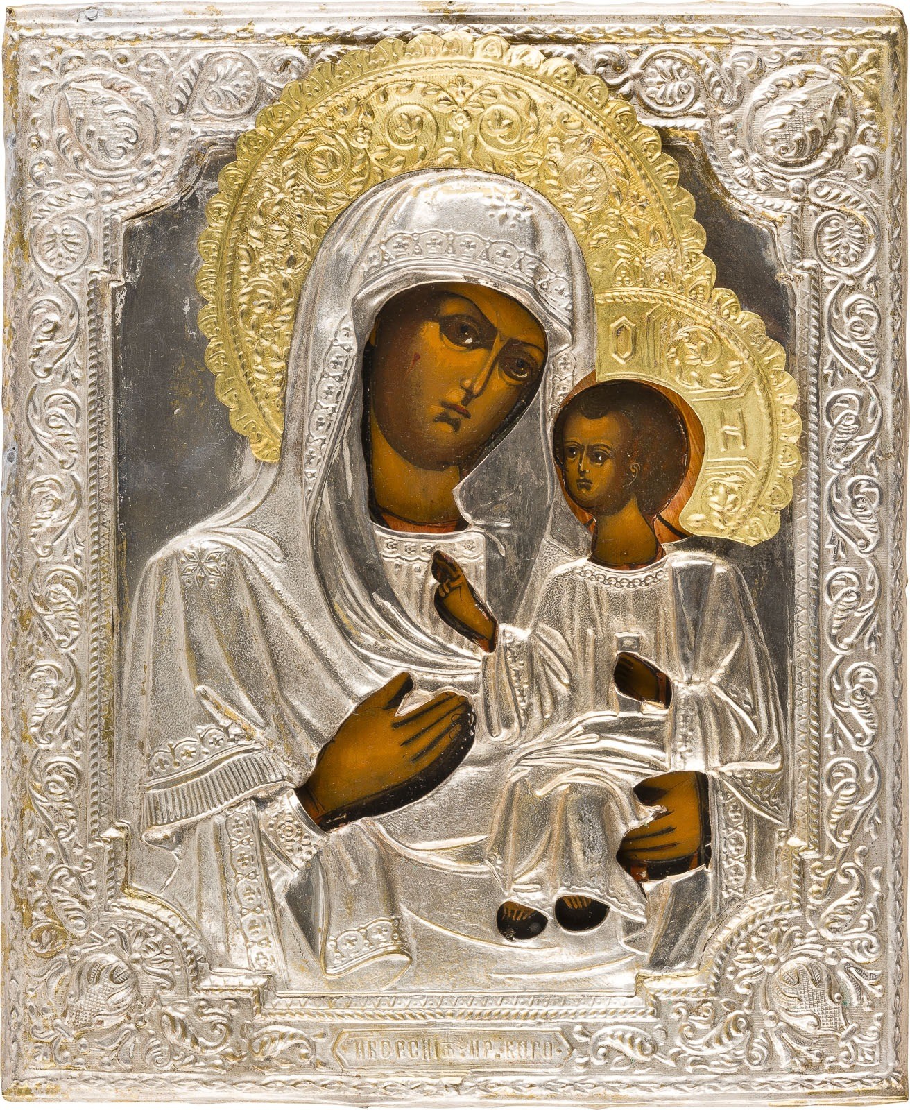 KLEINE IKONE MIT DER GOTTESMUTTER 'IWERSKAJA' MIT OKLAD