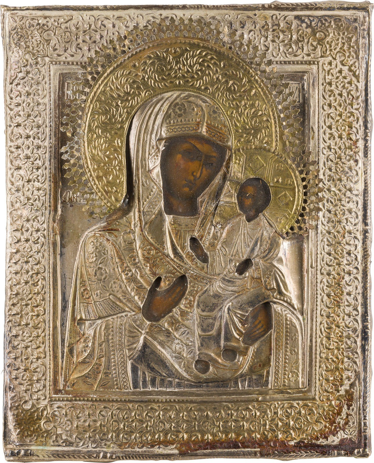 KLEINE IKONE MIT DER GOTTESMUTTER 'IWERSKAJA' MIT OKLAD