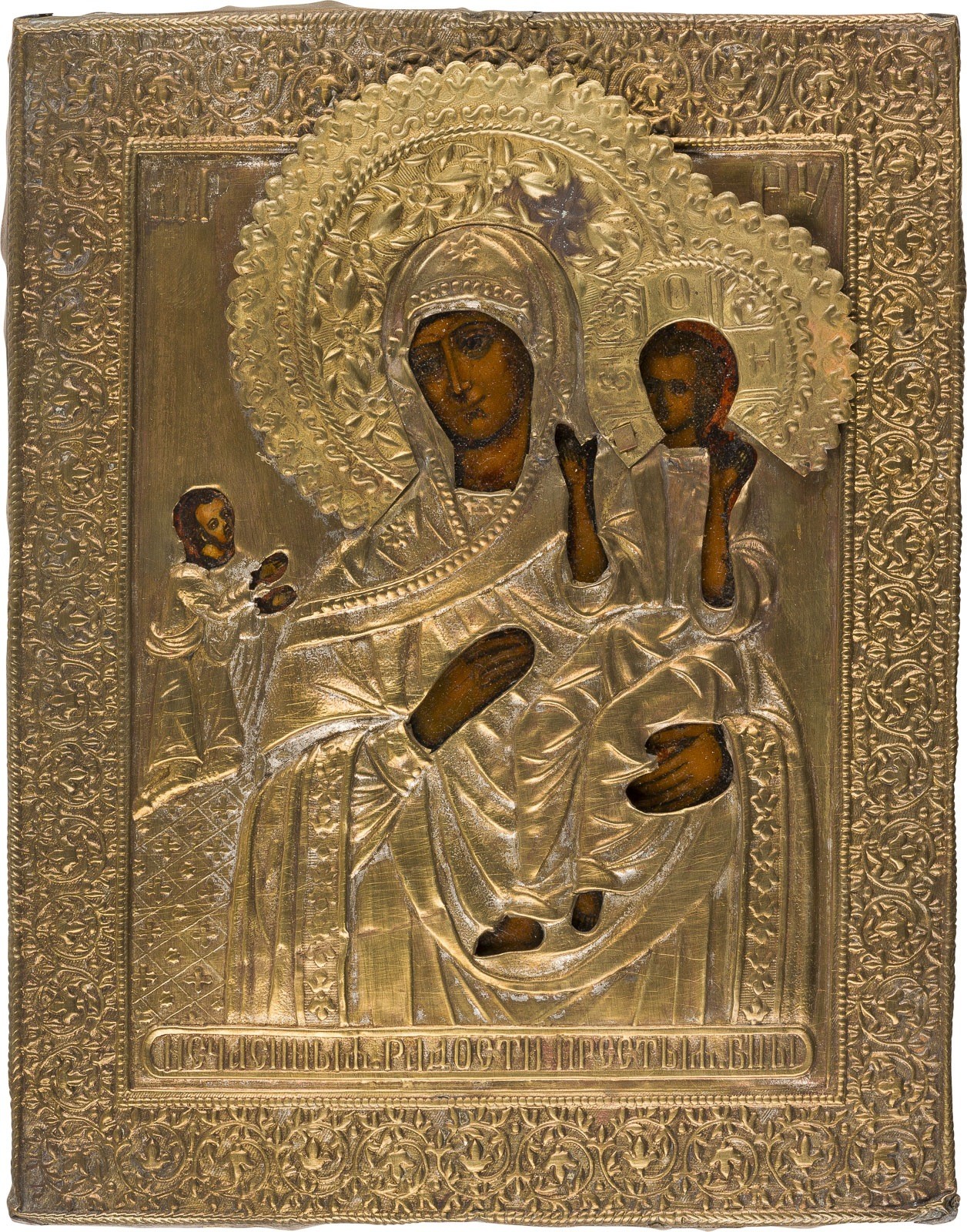 KLEINE IKONE MIT DER GOTTESMUTTER 'UNERWARTETE FREUDE' MIT OKLAD