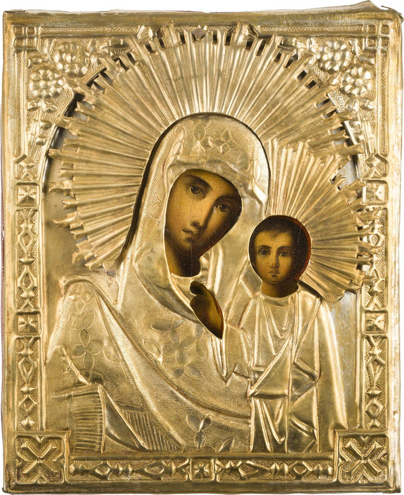 KLEINE IKONE MIT DER GOTTESMUTTER VON KASAN (KASANSKAJA) MIT OKLAD