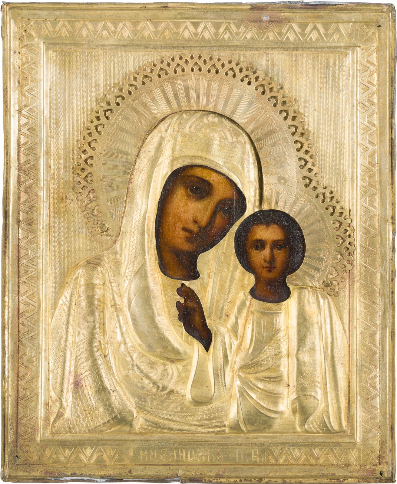 KLEINE IKONE MIT DER GOTTESMUTTER VON KASAN (KASANSKAJA) MIT OKLAD