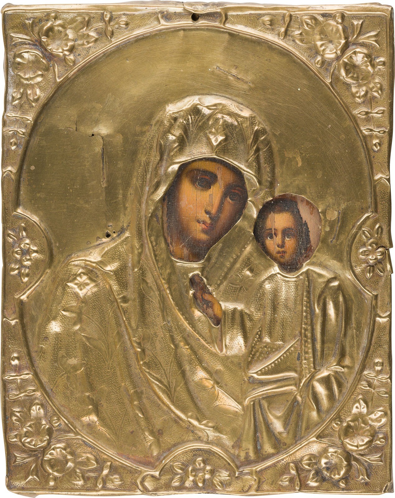KLEINE IKONE MIT DER GOTTESMUTTER VON KASAN (KASANSKAJA) MIT OKLAD