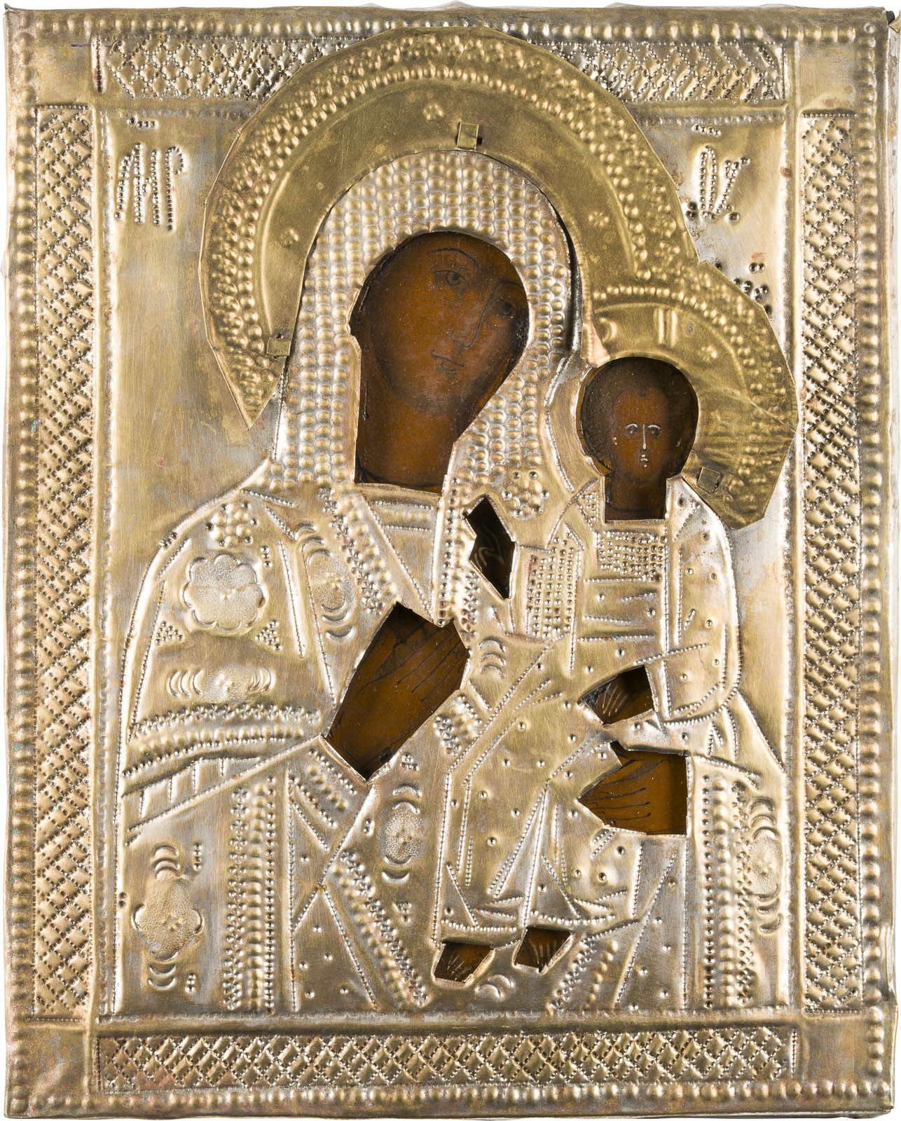 KLEINE IKONE MIT DER GOTTESMUTTER VON SMOLENSK (SMOLENSKAJA) MIT OKLAD