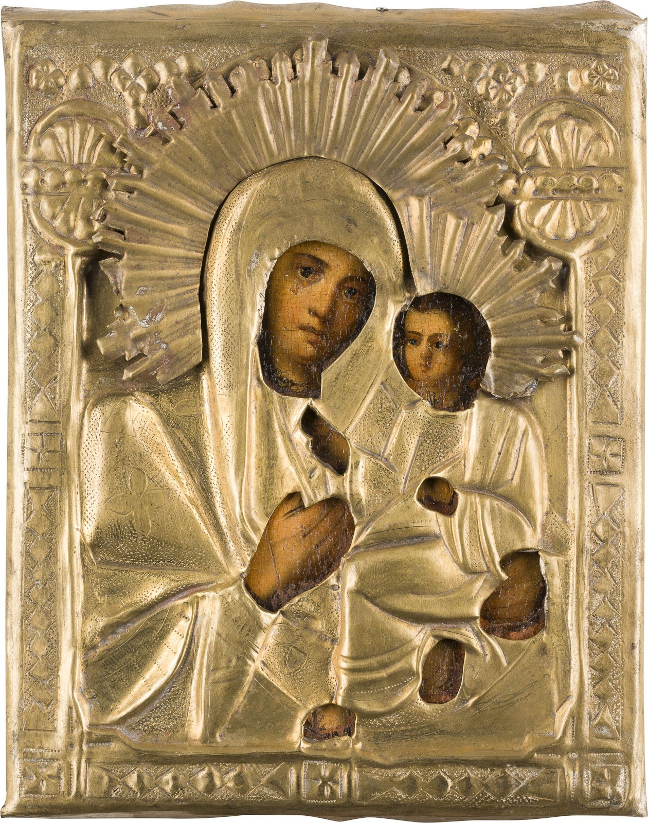KLEINE IKONE MIT DER GOTTESMUTTER VON TICHWIN (TICHWINSKAJA) MIT OKLAD