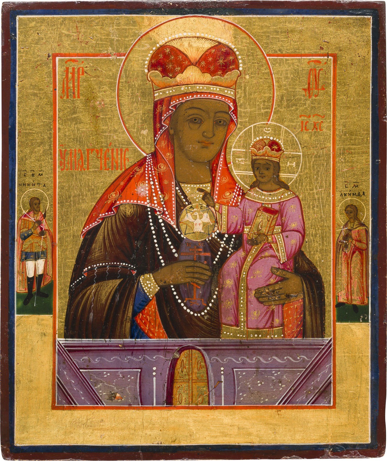 Einzeltafel. Eitempera auf Kreidegrund, Hintergrund vergoldet. 26,4 x 22,4 cm. Zwei Randheilige, darunter der Heilige Nikita.