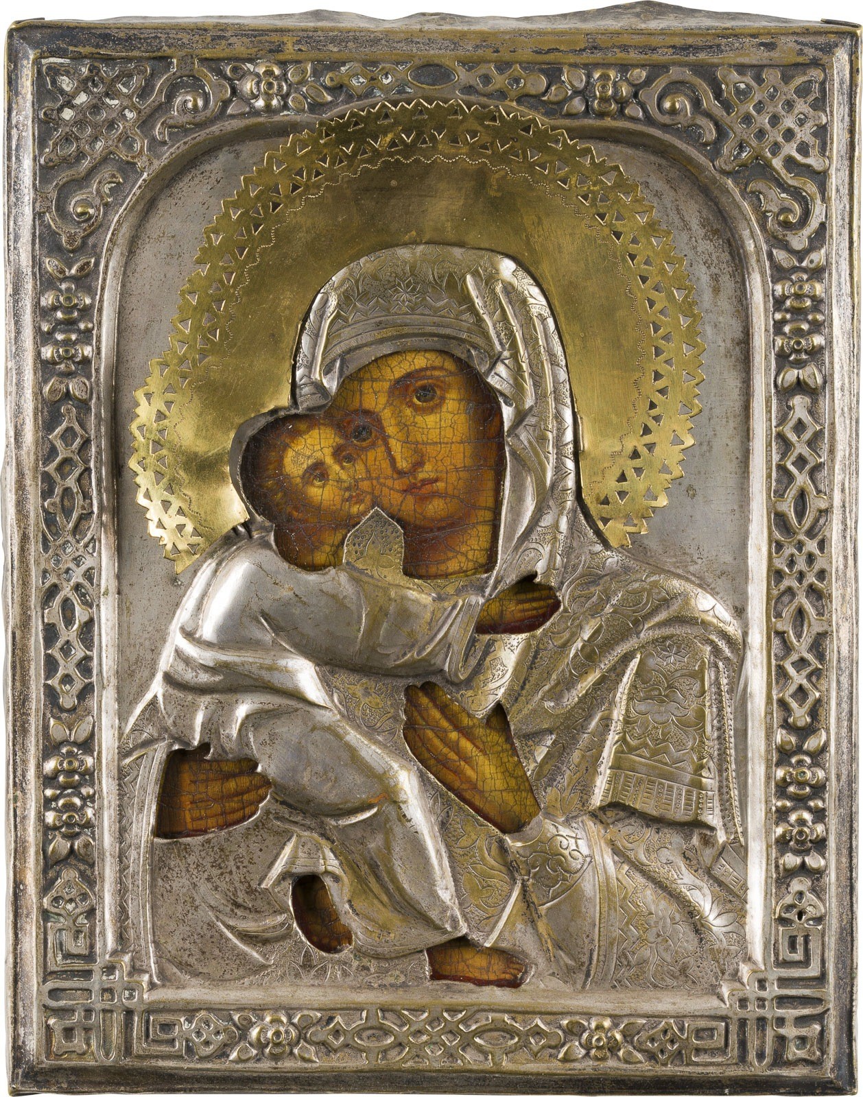 KLEINE IKONE MIT DER GOTTESMUTTER VON WLADIMIR (WLADIMIRSKAJA) MIT OKLAD