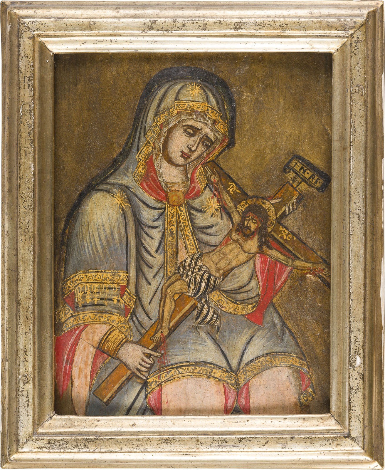 KLEINE IKONE MIT DER TRAUERNDEN GOTTESMUTTER MIT DEM KRUZIFIX