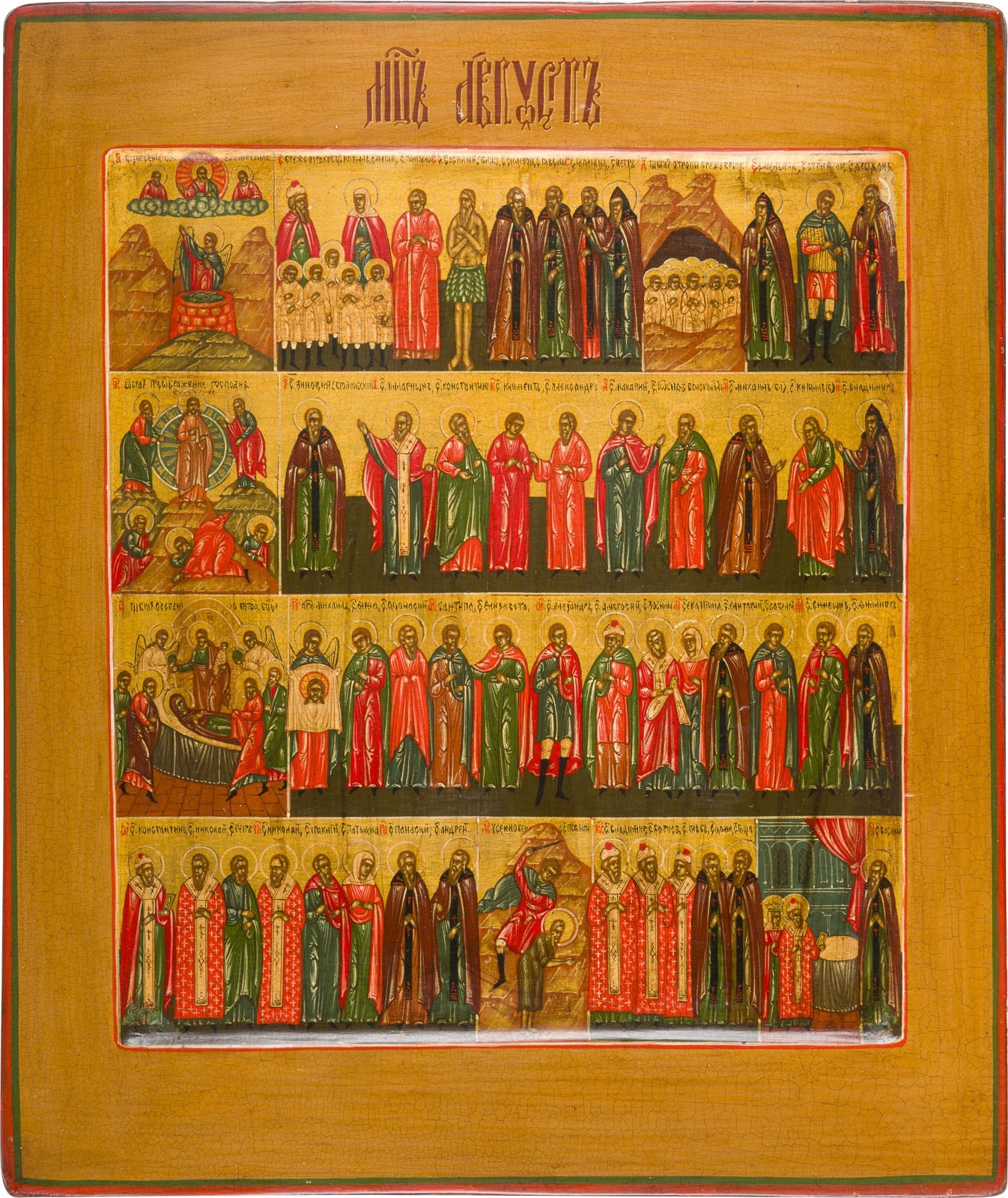 Holztafel mit zwei Rückseiten-Sponki (verloren). Kowtscheg, Eitempera auf Kreidegrund, Goldgrund. 31,8 x 27,1 cm.