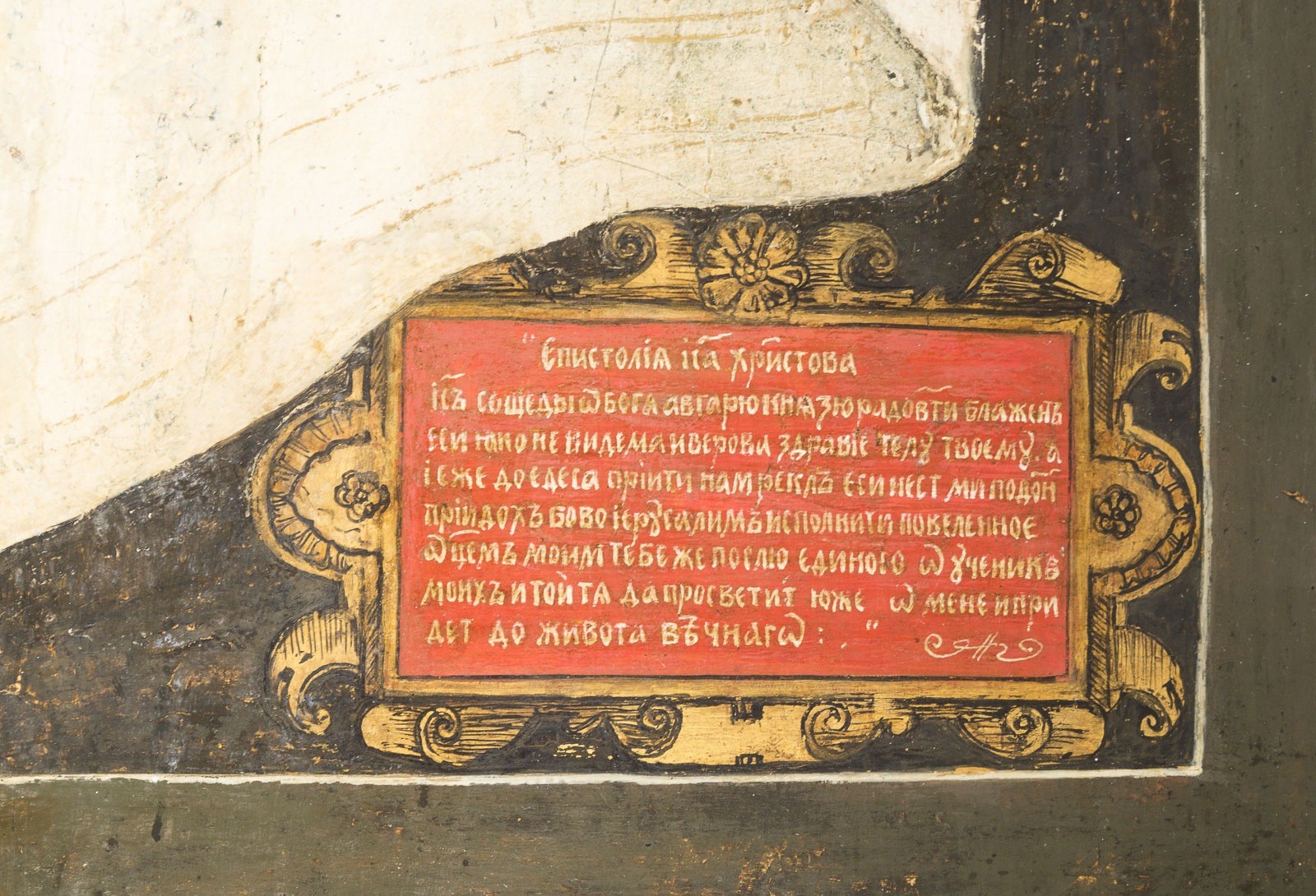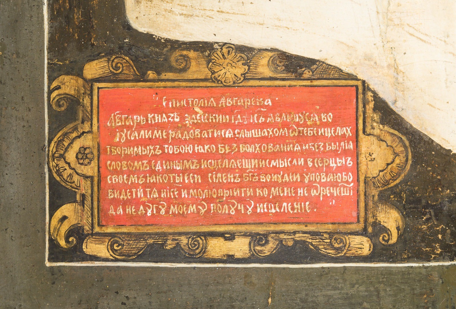 MONUMENTALE, BEZEICHNETE IKONE MIT DEM MANDYLION AUS EINER KIRCHEN-IKONOSTASE
