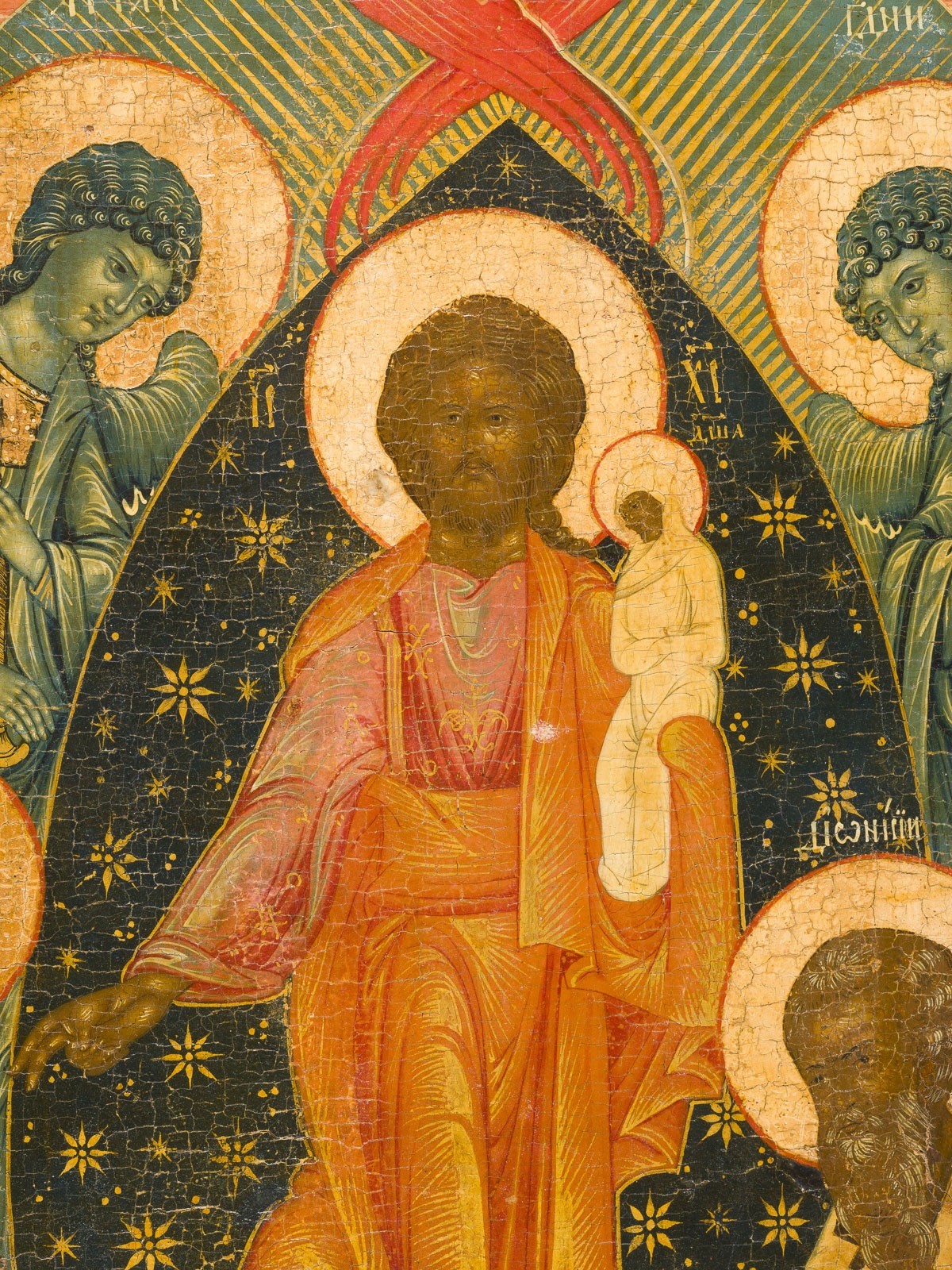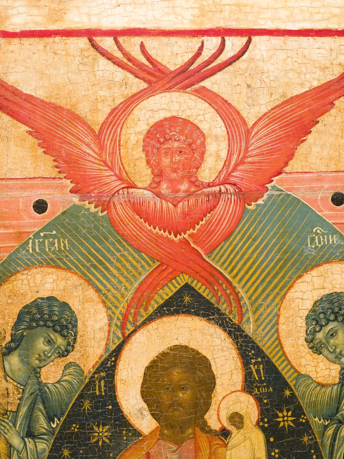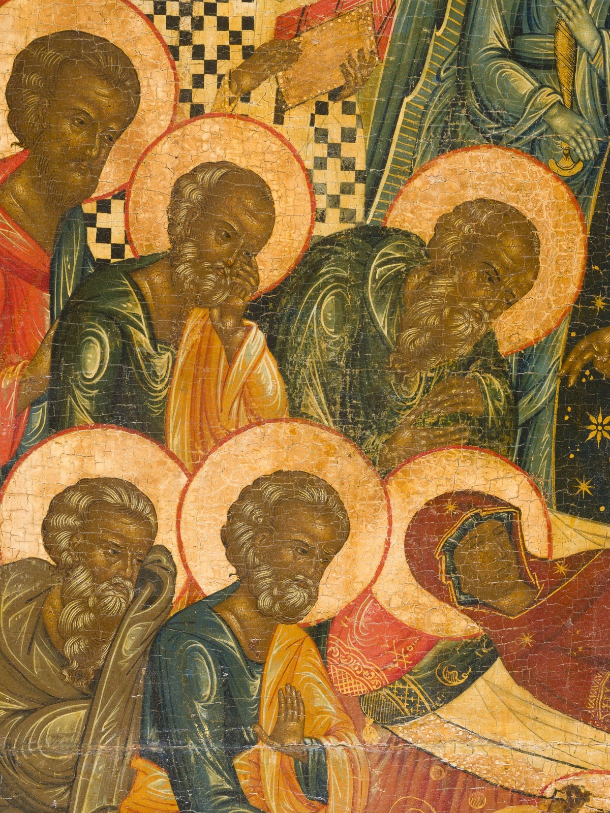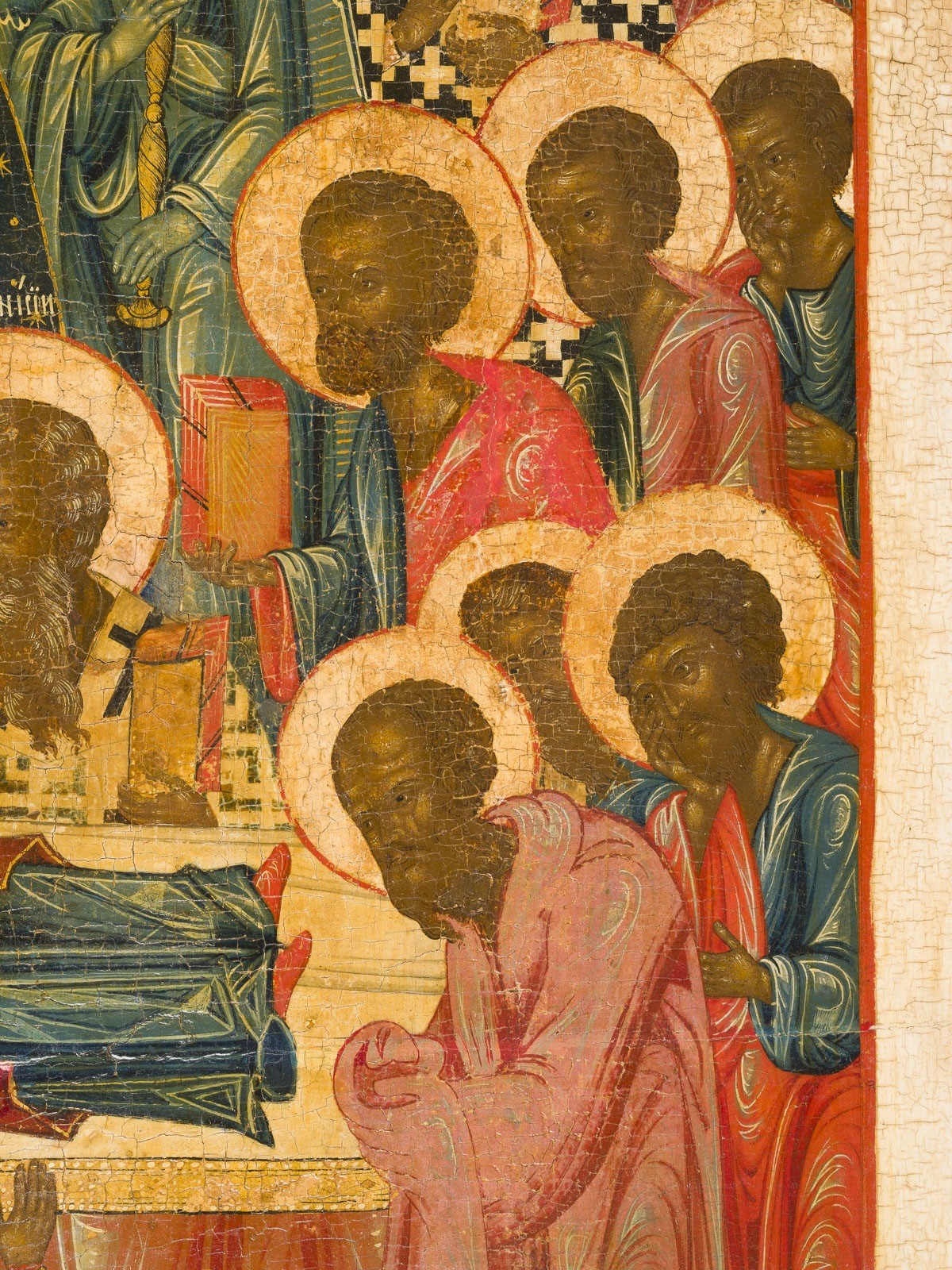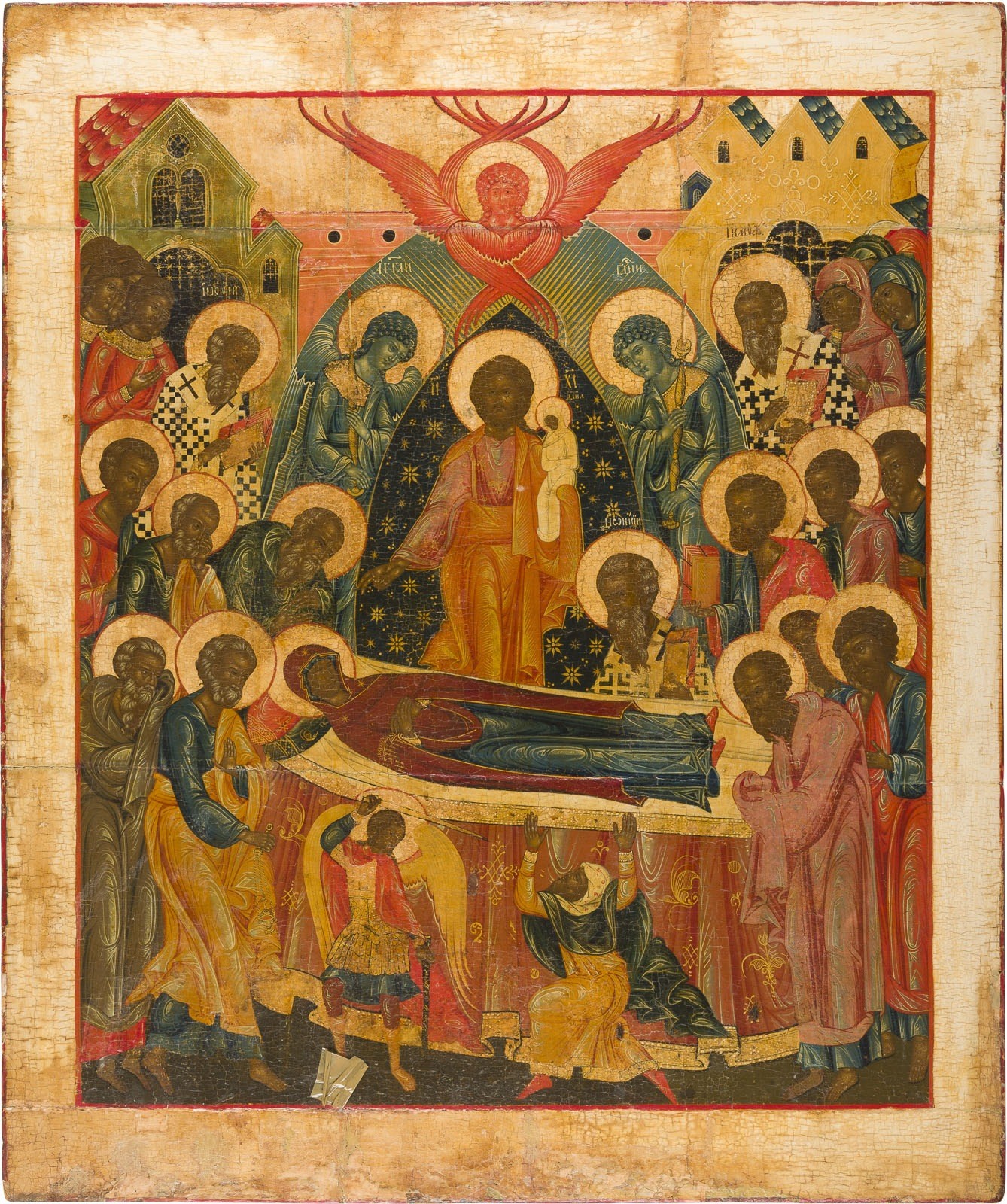 MONUMENTALE IKONE MIT DEM ENTSCHLAFEN DER GOTTESMUTTER (KOIMESIS) AUS EINER KIRCHEN-IKONOSTASE