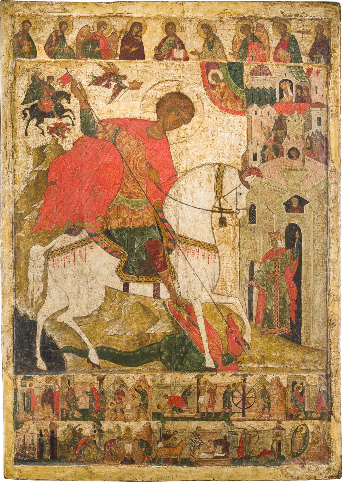 MONUMENTALE IKONE MIT DEM HEILIGEN GEORG DEM DRACHENTÖTER MIT SEINEM MARTYRIUM