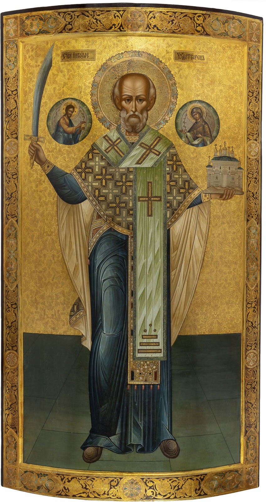 MONUMENTALE IKONE MIT DEM HEILIGEN NIKOLAUS VON MOSCHAISK AUS EINER KIRCHEN-IKONOSTASE