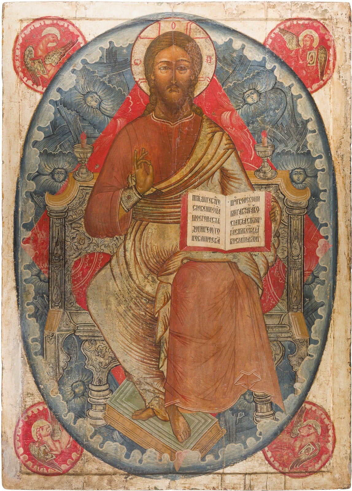MONUMENTALE IKONE MIT DEM THRONENDEN CHRISTUS ALS WELTENHERRSCHER AUS EINER KIRCHEN-IKONOSTASE