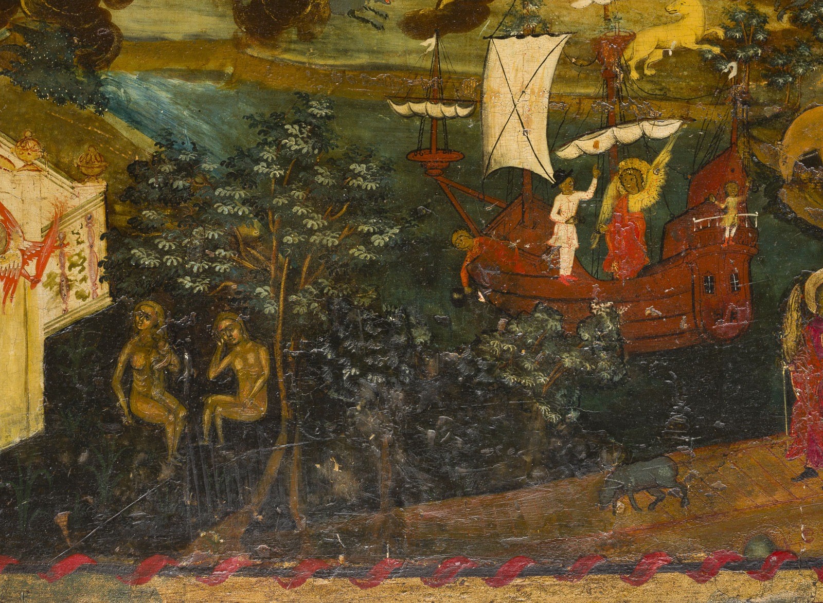 Nebenszenen wie dem Fischfang des Tobias, Adam und Eva sowie dem Höllenschlund. Min. Substanzverluste, partiell rest.
