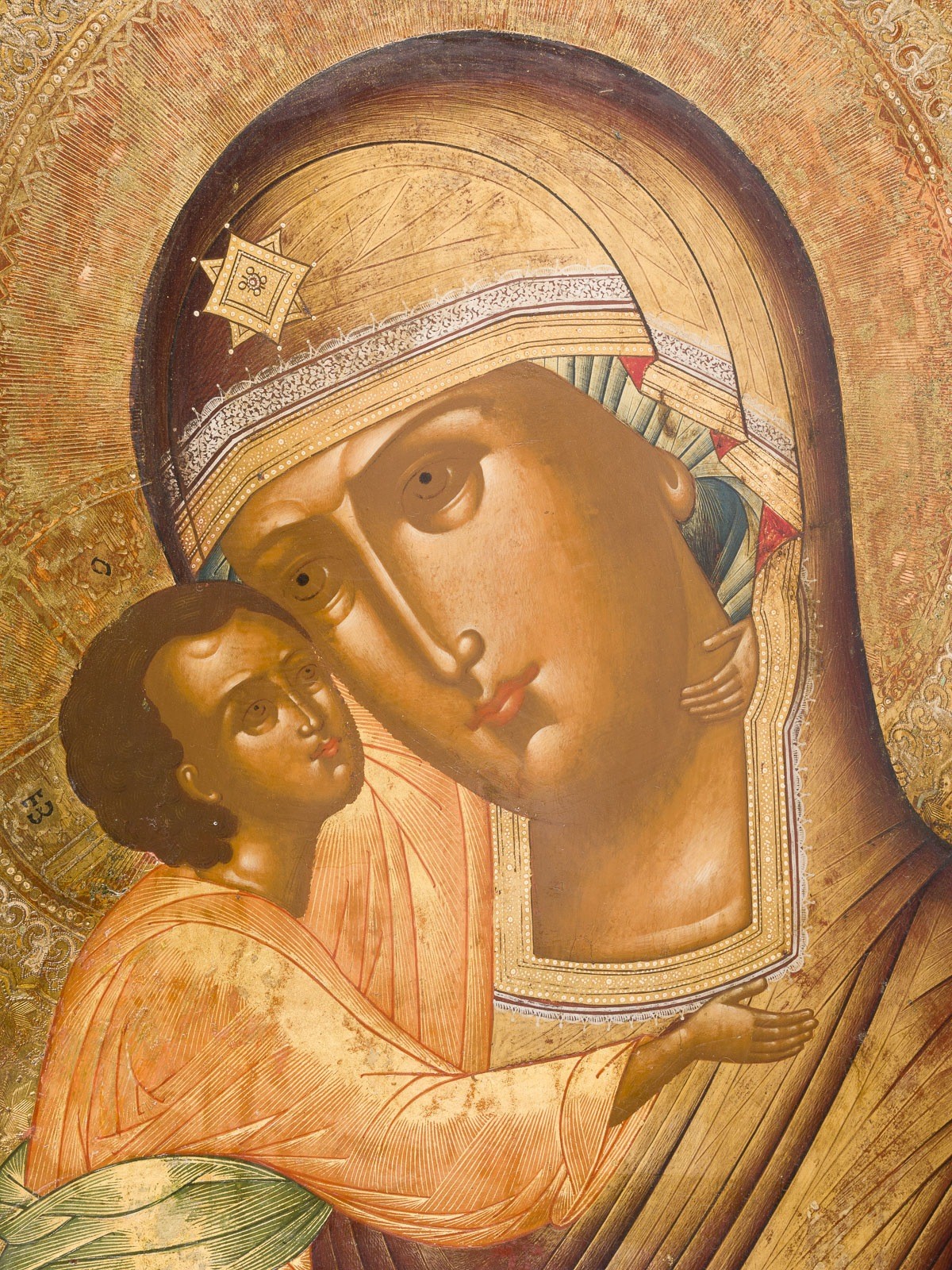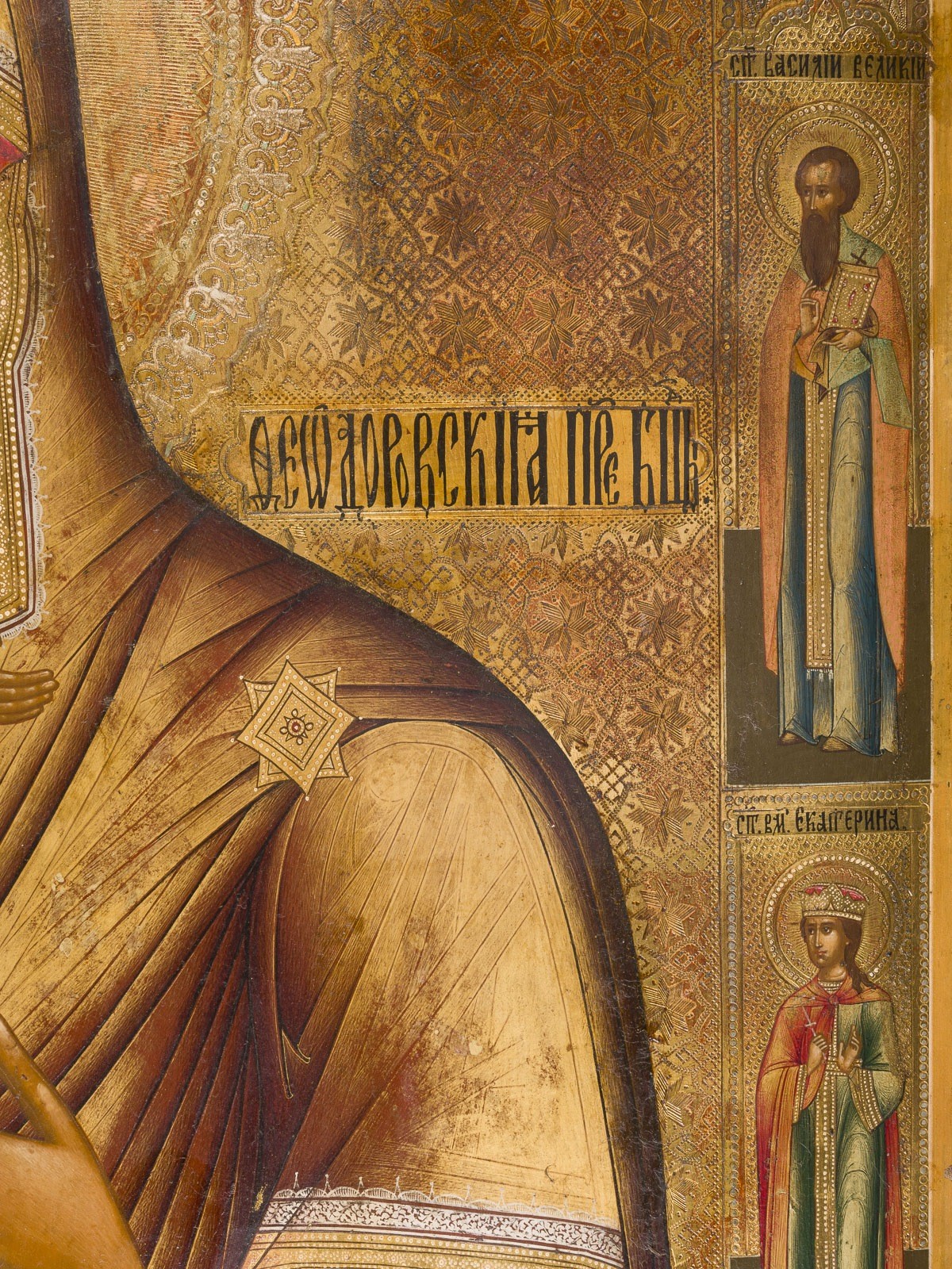 MONUMENTALE UND SEHR FEINE IKONE MIT DER GOTTESMUTTER FEODOROWSKAJA AUS EINER KIRCHEN-IKONOSTASE