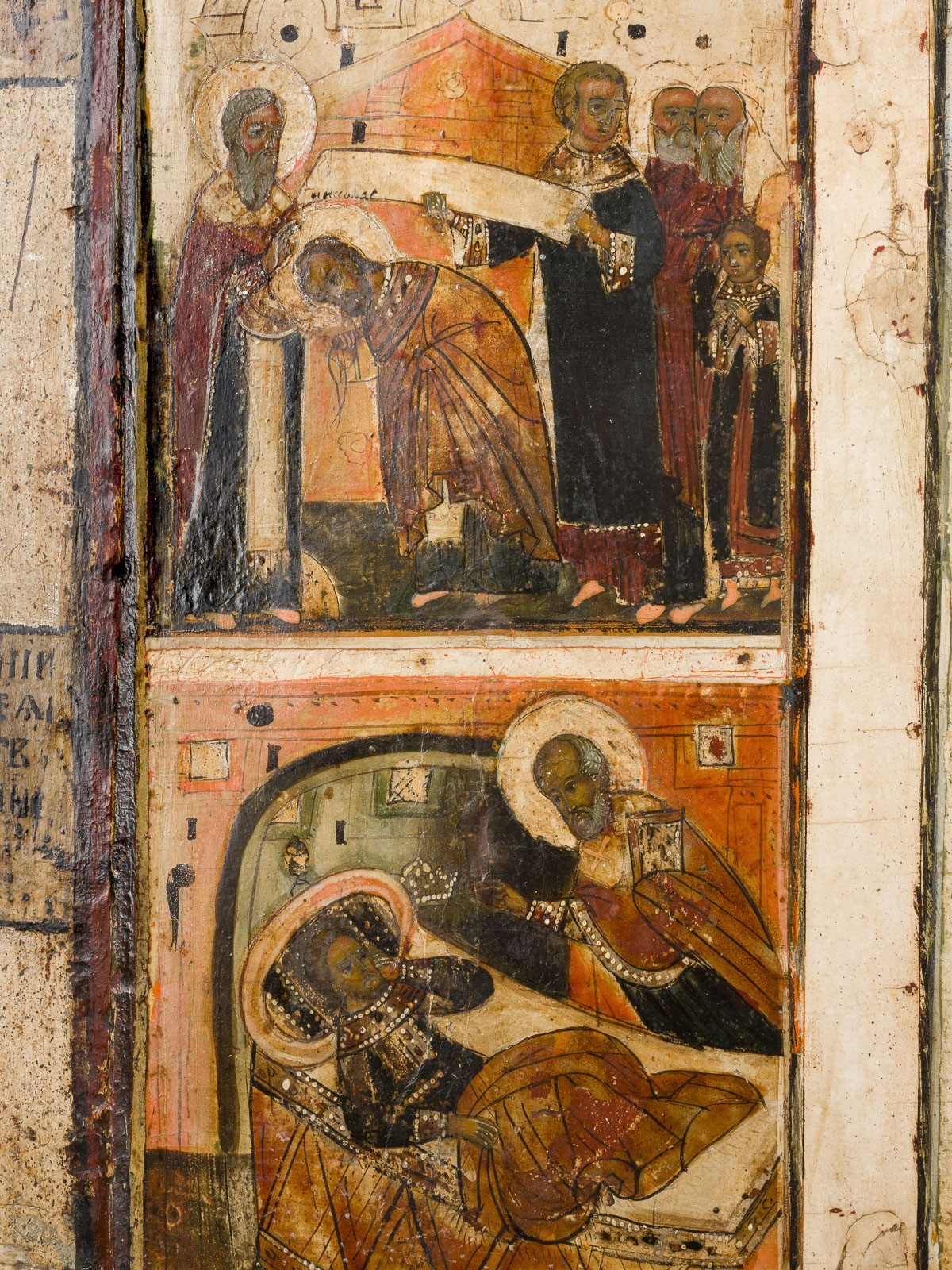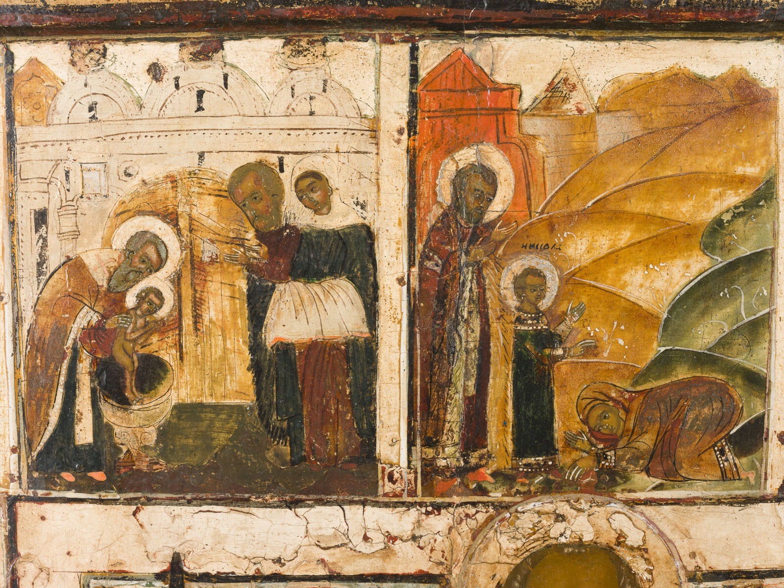 MONUMENTALE VITA-IKONE MIT DEM HEILIGEN NIKOLAUS VON MOSCHAISK