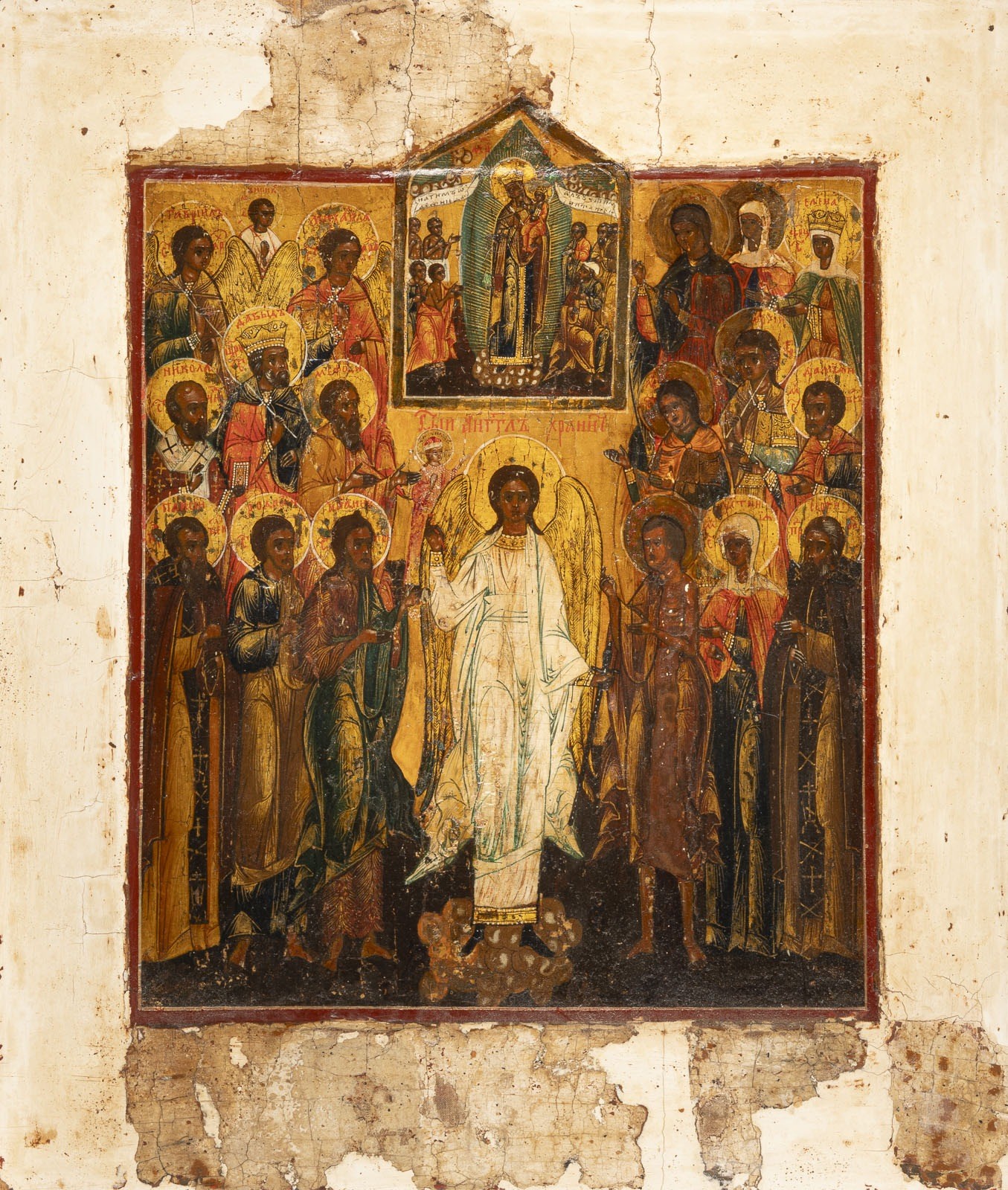 PATRONATSIKONE MIT DEM SCHUTZENGEL FLANKIERT VON AUSGEWÄHLTEN HEILIGEN UND DER GOTTESMUTTER 'FREUDE ALLER LEIDENDEN'