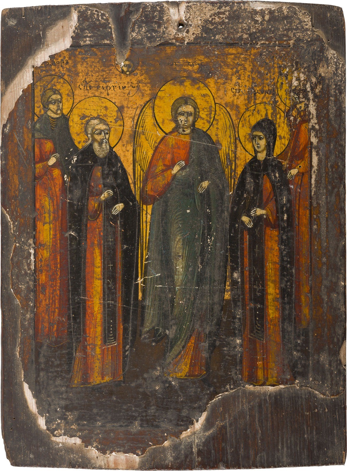 PATRONATSIKONE MIT EINEM ERZENGEL UND VIER HEILIGEN