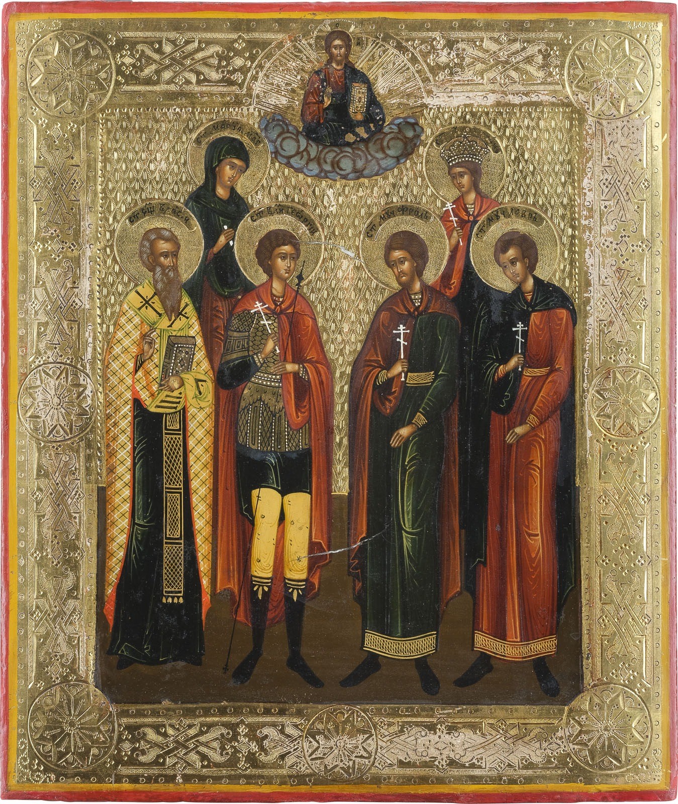 PATRONATSIKONE MIT SECHS HEILIGEN, DARUNTER BLASIUS, FLORUS UND LAURUS