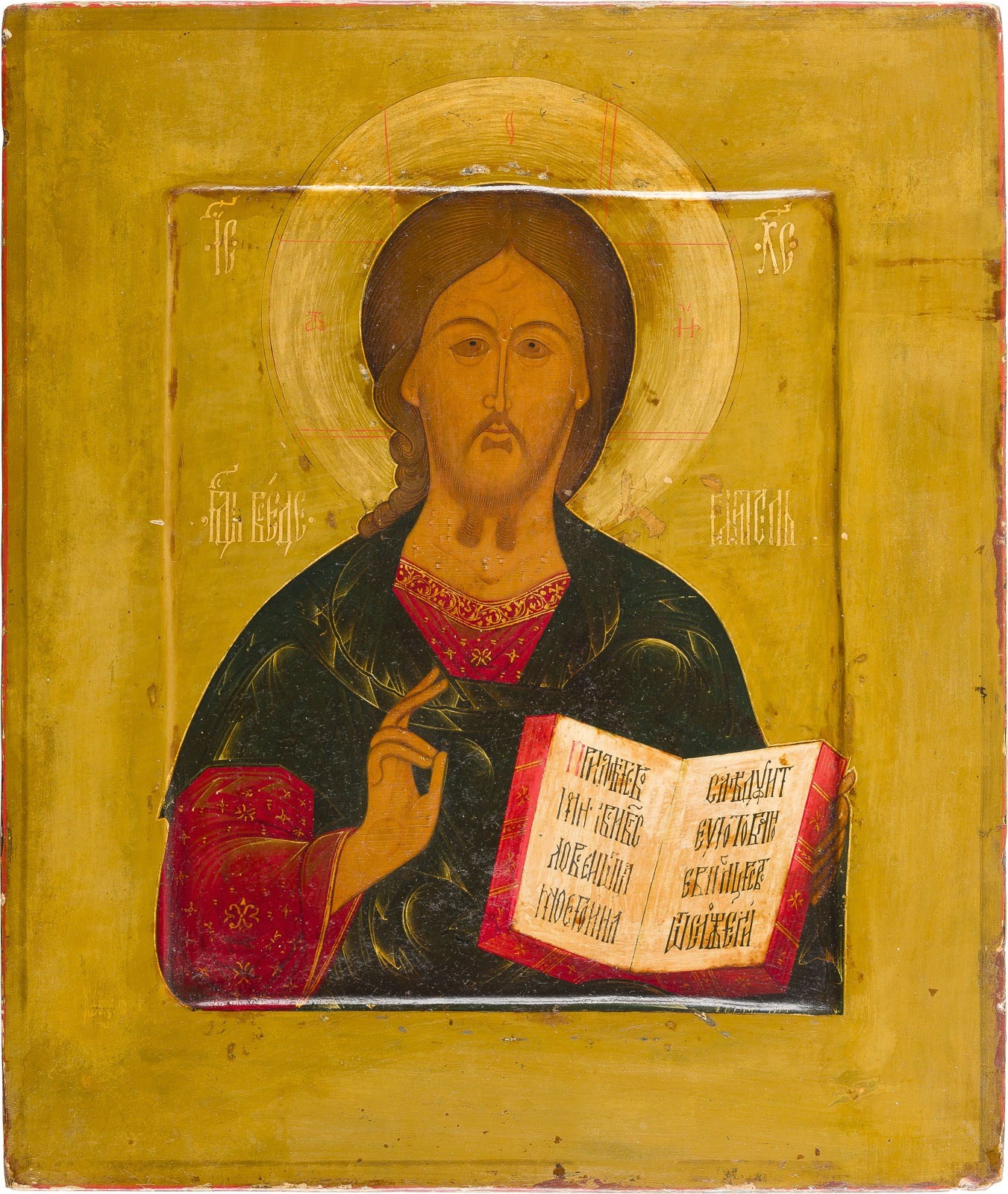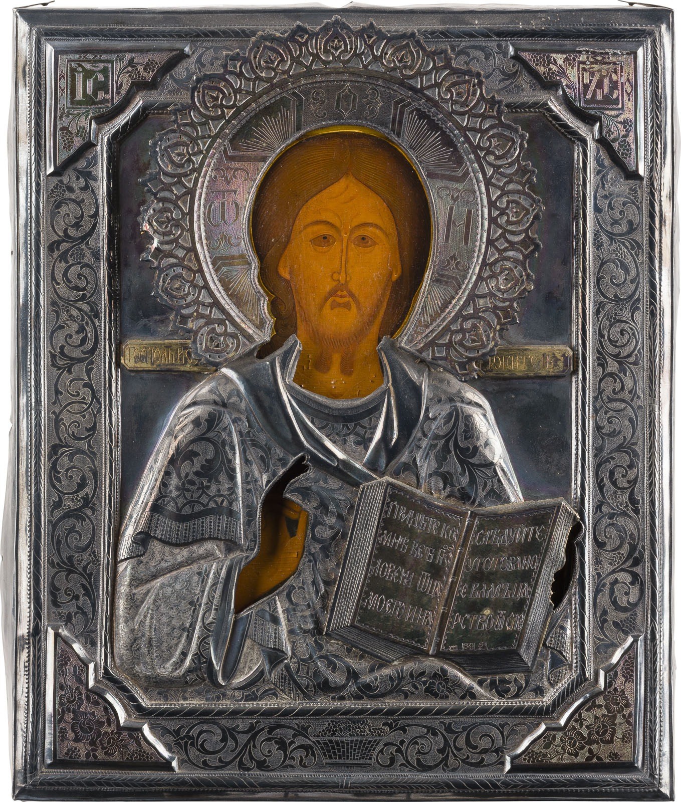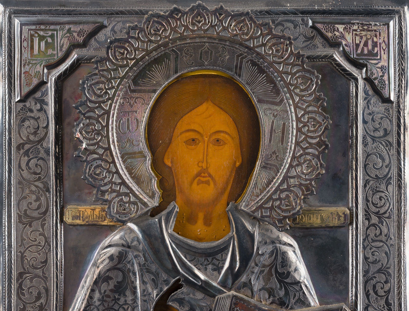 SEHR FEINE IKONE MIT CHRISTUS PANTOKRATOR MIT SILBER-OKLAD