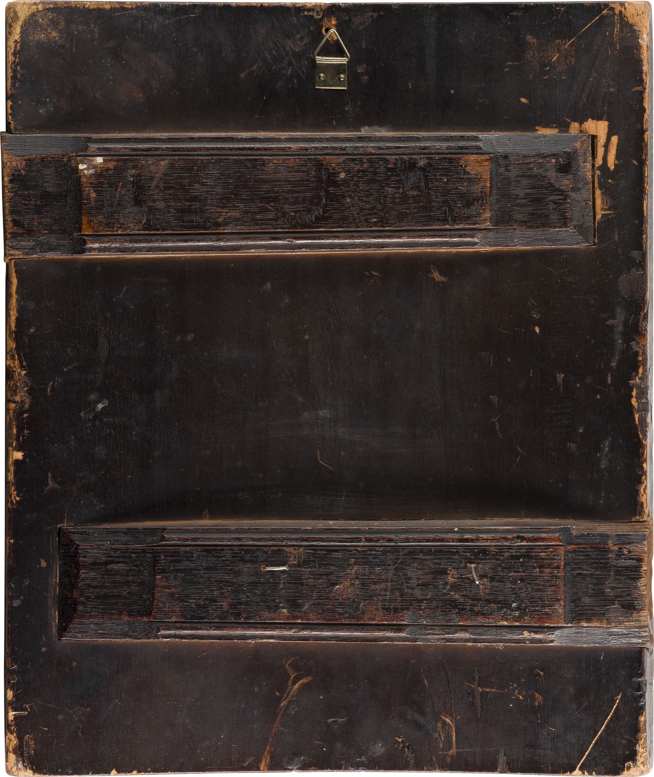 Einzeltafel mit zwei profilierten Rückseiten-Sponki. Kwotscheg, Eitempera auf Kreidegrund, partielle Vergoldung. 35,8 x 30,1 cm. Vielfigurige und detailreiche Erzählung des Weihnachtsgeschehens über das gesamte