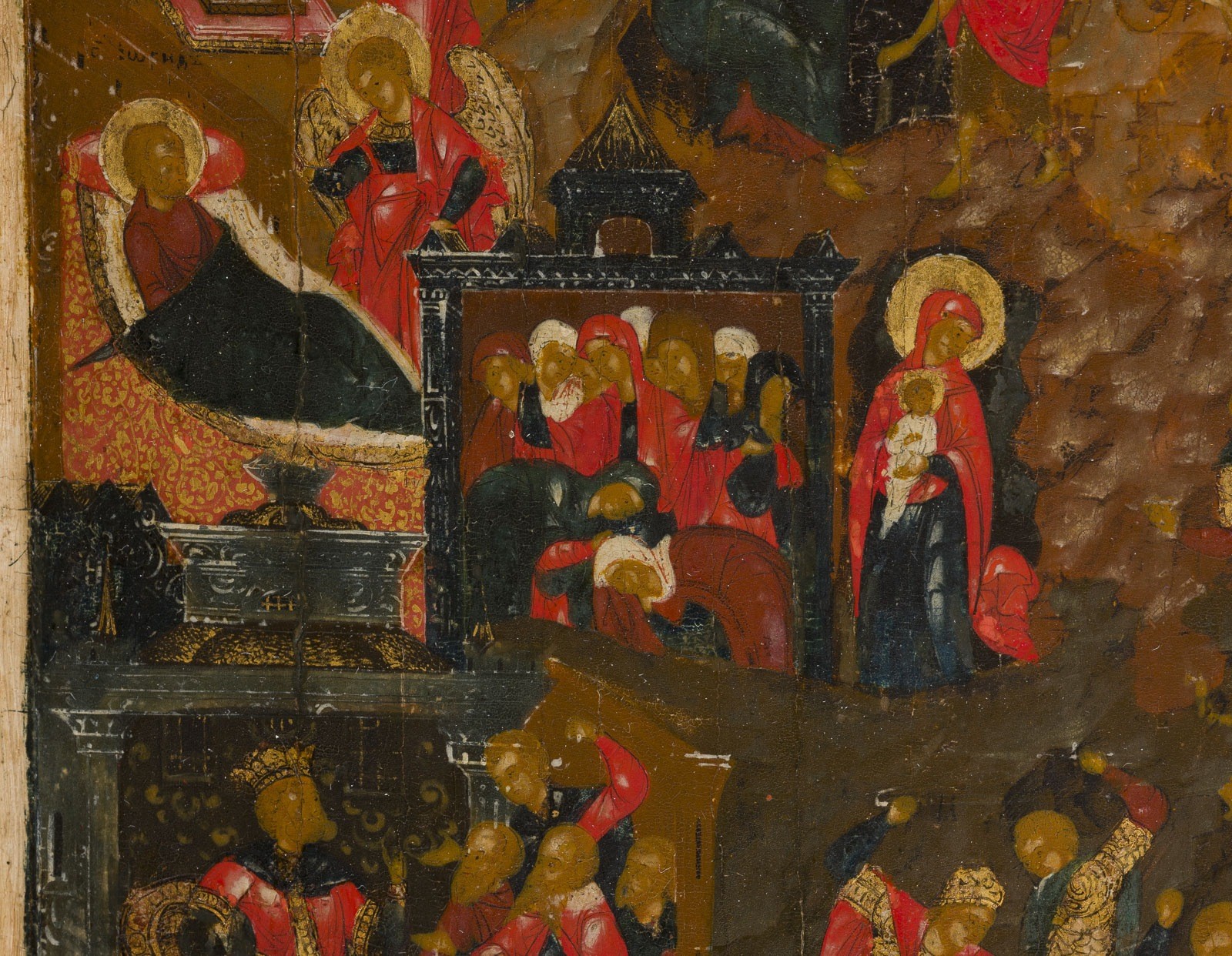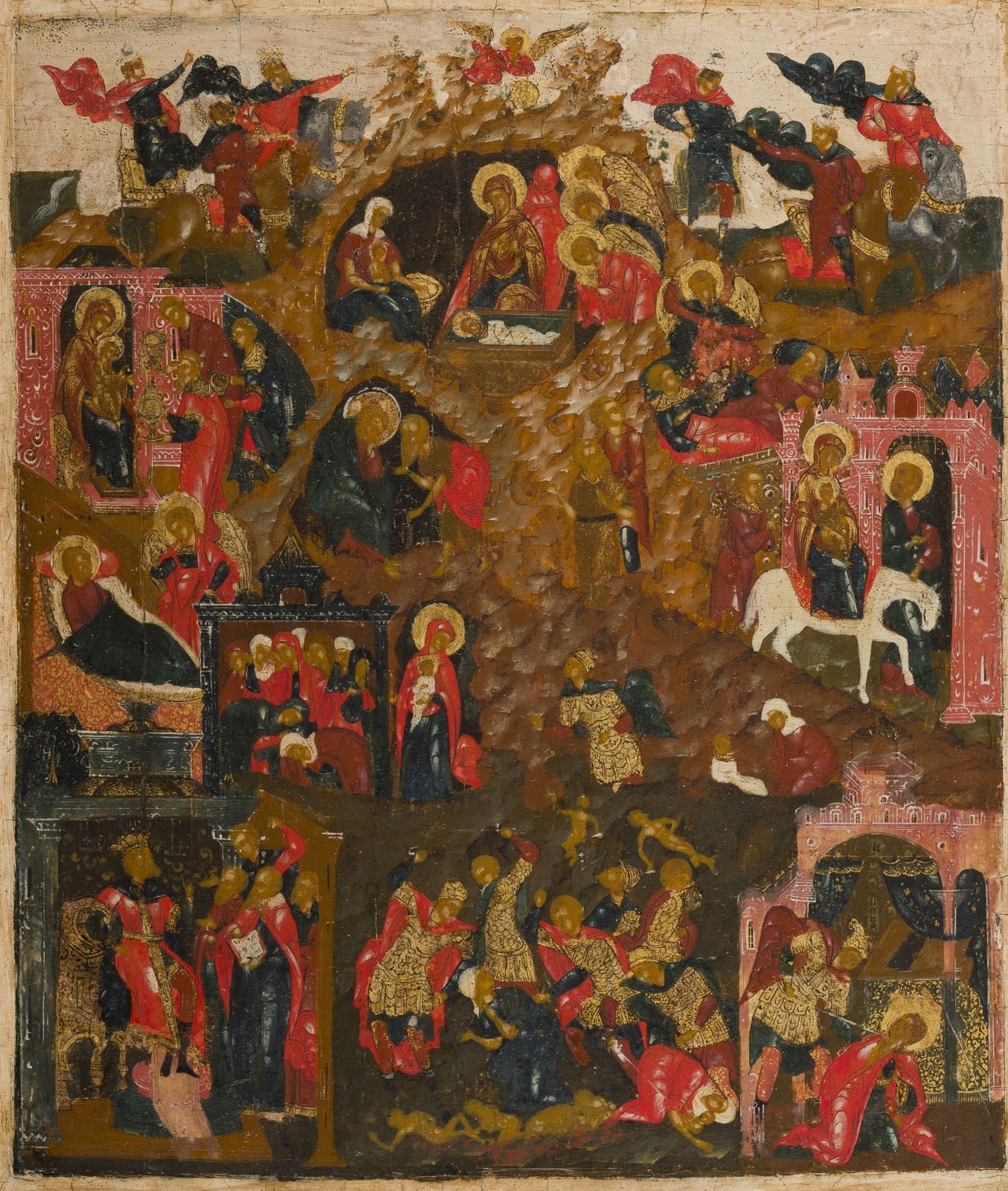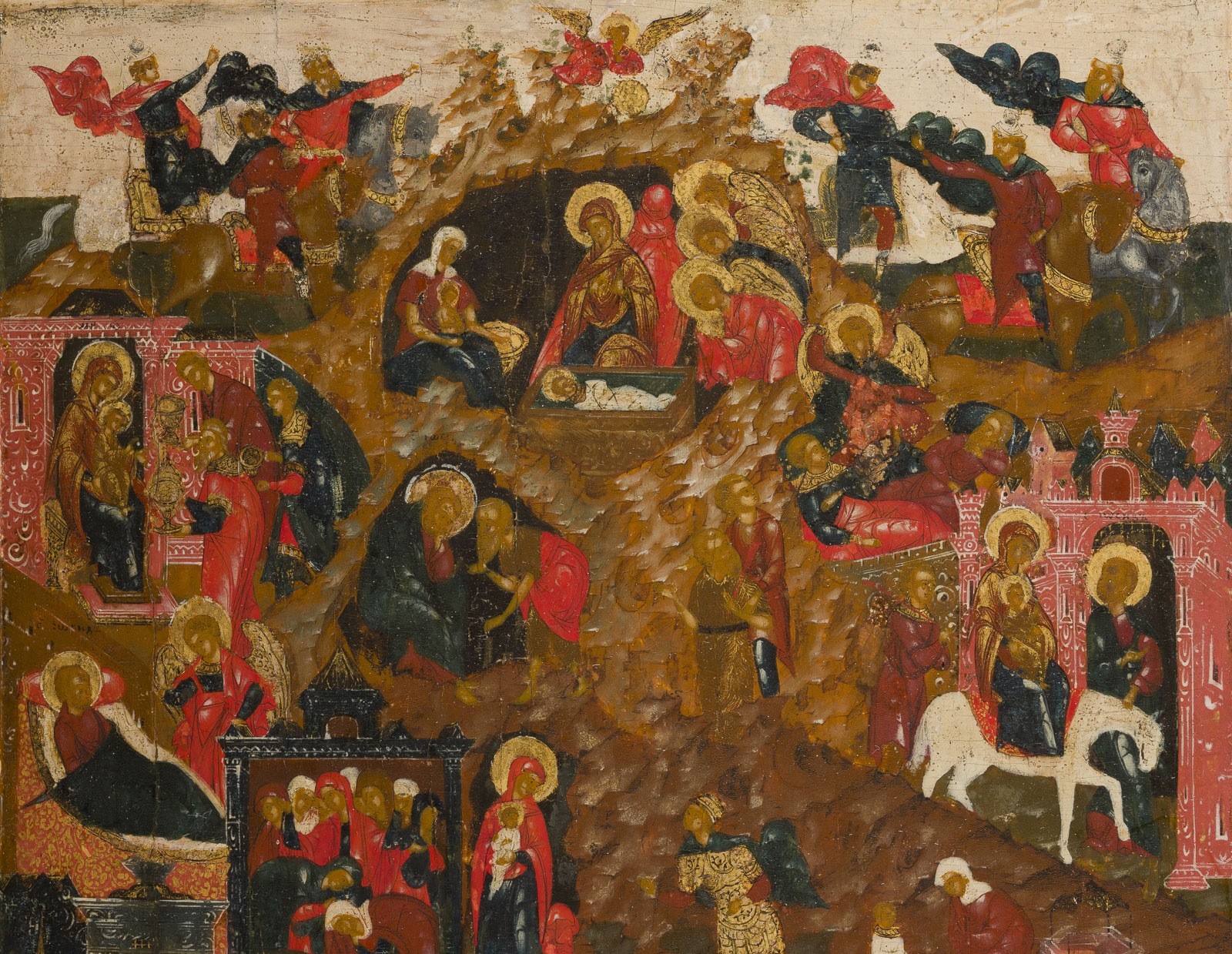 SEHR FEINE IKONE MIT DEN GESCHEHNISSEN UM DIE GEBURT CHRISTI