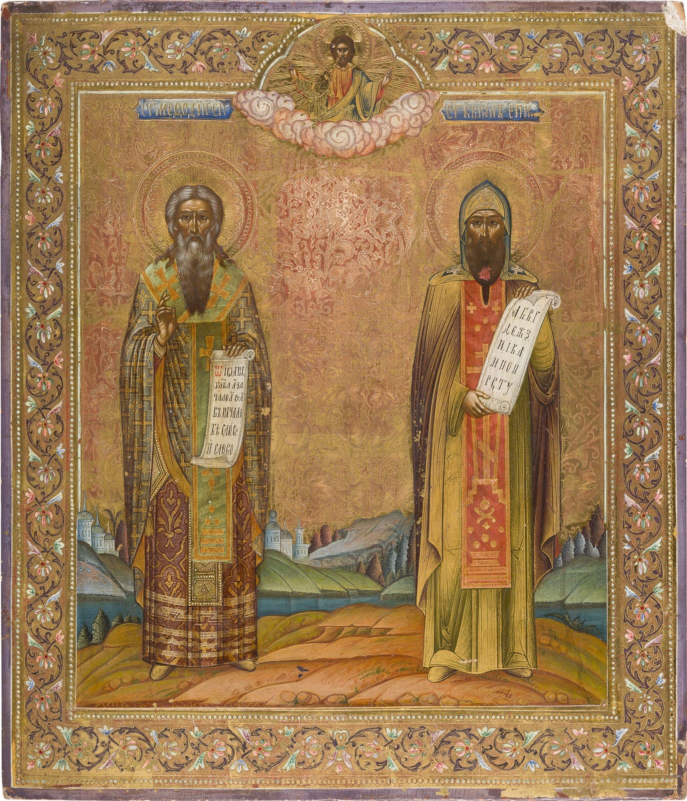 SEHR FEINE IKONE MIT DEN HEILIGEN METHOD UND KYRILL