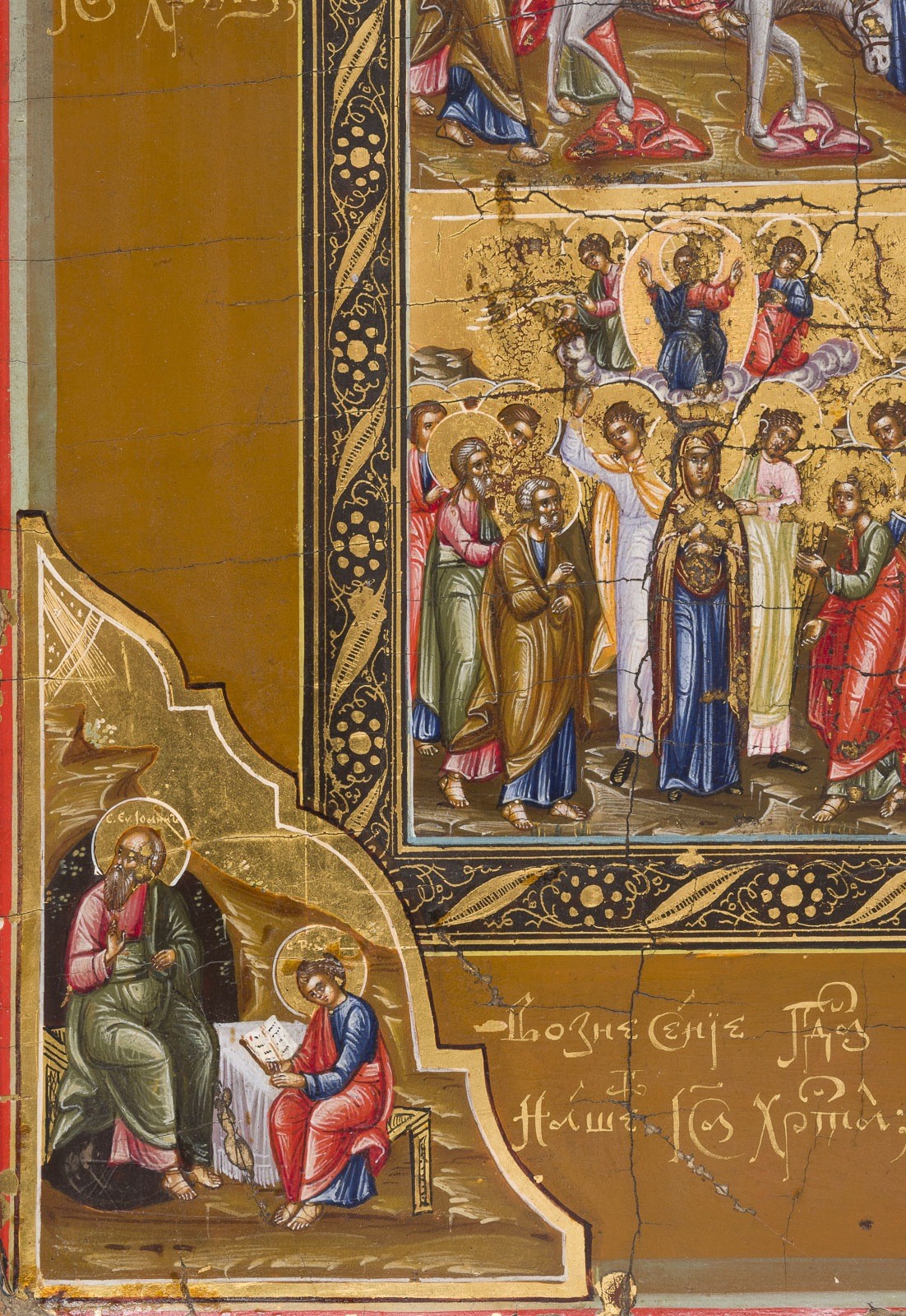 SEHR FEINE IKONE MIT DER AUFERSTEHUNG UND HÖLLENFAHRT MIT ZWÖLF HOCHFESTEN DES ORTHODOXEN KIRCHENJAHRES