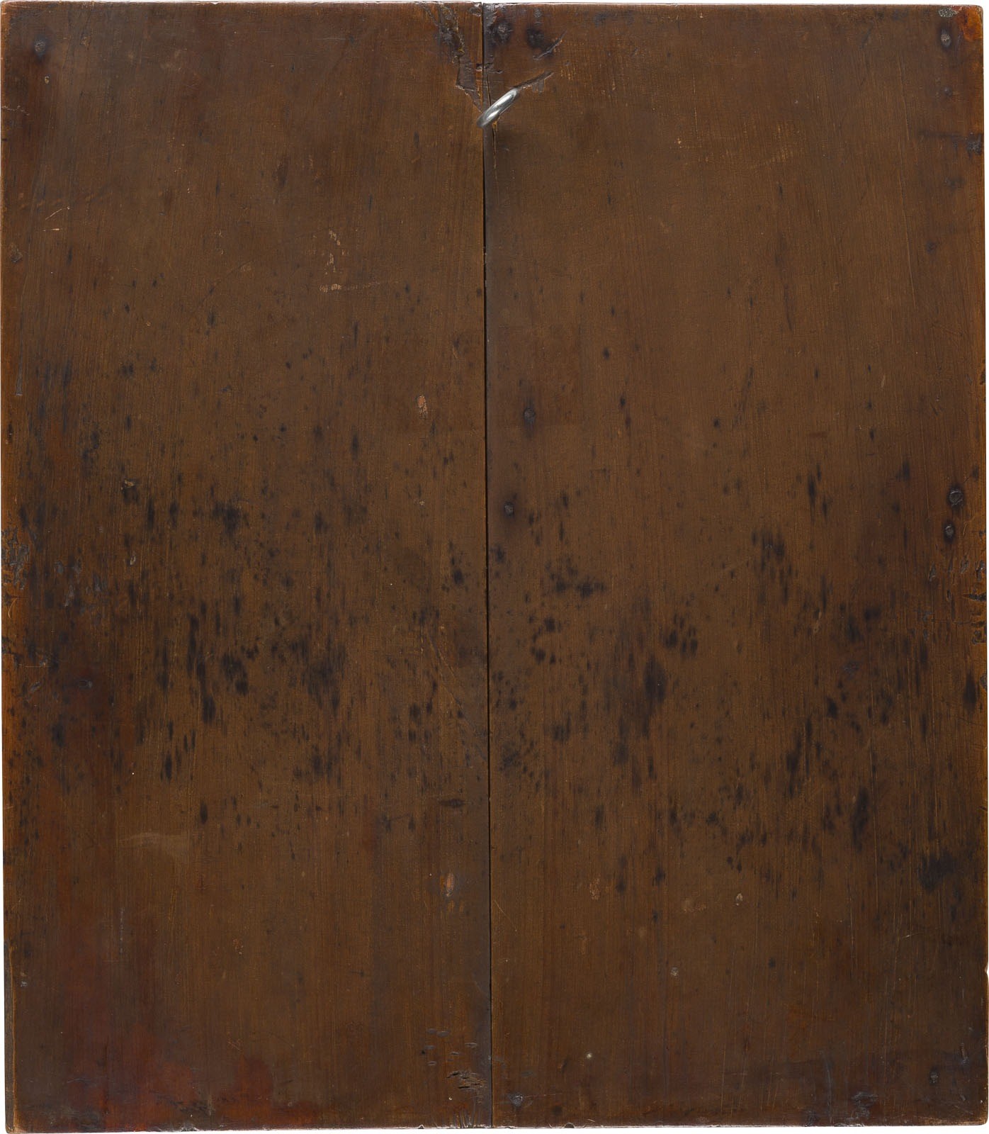 Holztafel mit zwei Rückseiten-Sponki auf Holztafeln aufgedoppelt. Kowtscheg, Eitempera auf Kreidegrund, Goldgrund. 35,4 x 30,8 cm. In kräftiger Farbigkeit ausgeführte Miniaturmalerei. Kleinere Substanzverluste.