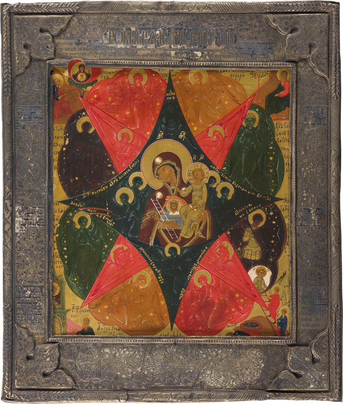SEHR FEINE IKONE MIT DER GOTTESMUTTER 'UNVERBRENNBARER DORNBUSCH' MIT VERMEIL-BASMA