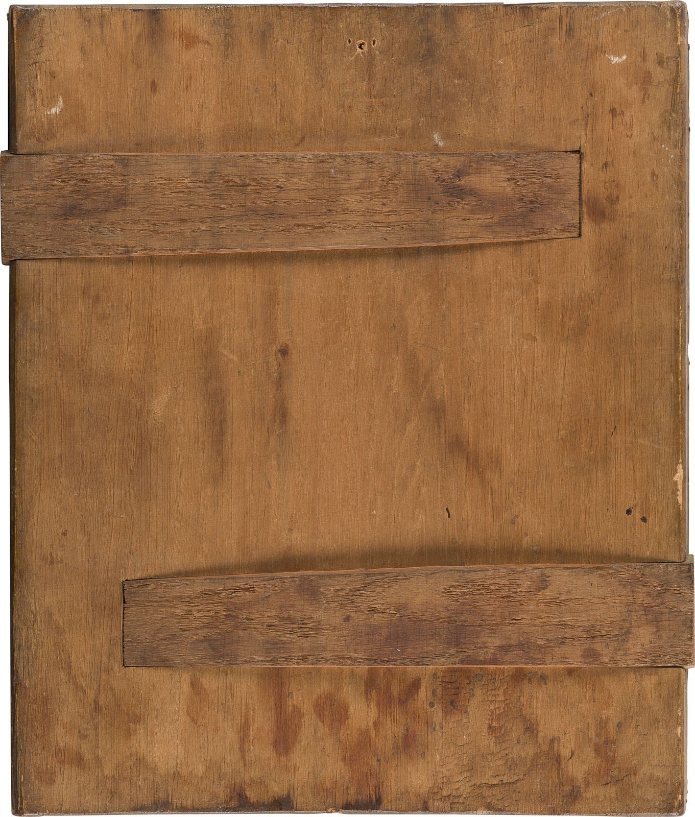 Einzeltafel mit zwei Rückseiten-Sponki. Kowtscheg, Eitempera auf Kreidegrund, partielle Vergoldung. 31,4 x 26,8 cm. Farbe des Hintergrundes und Randes abgenommen, min. Einstimmungen.