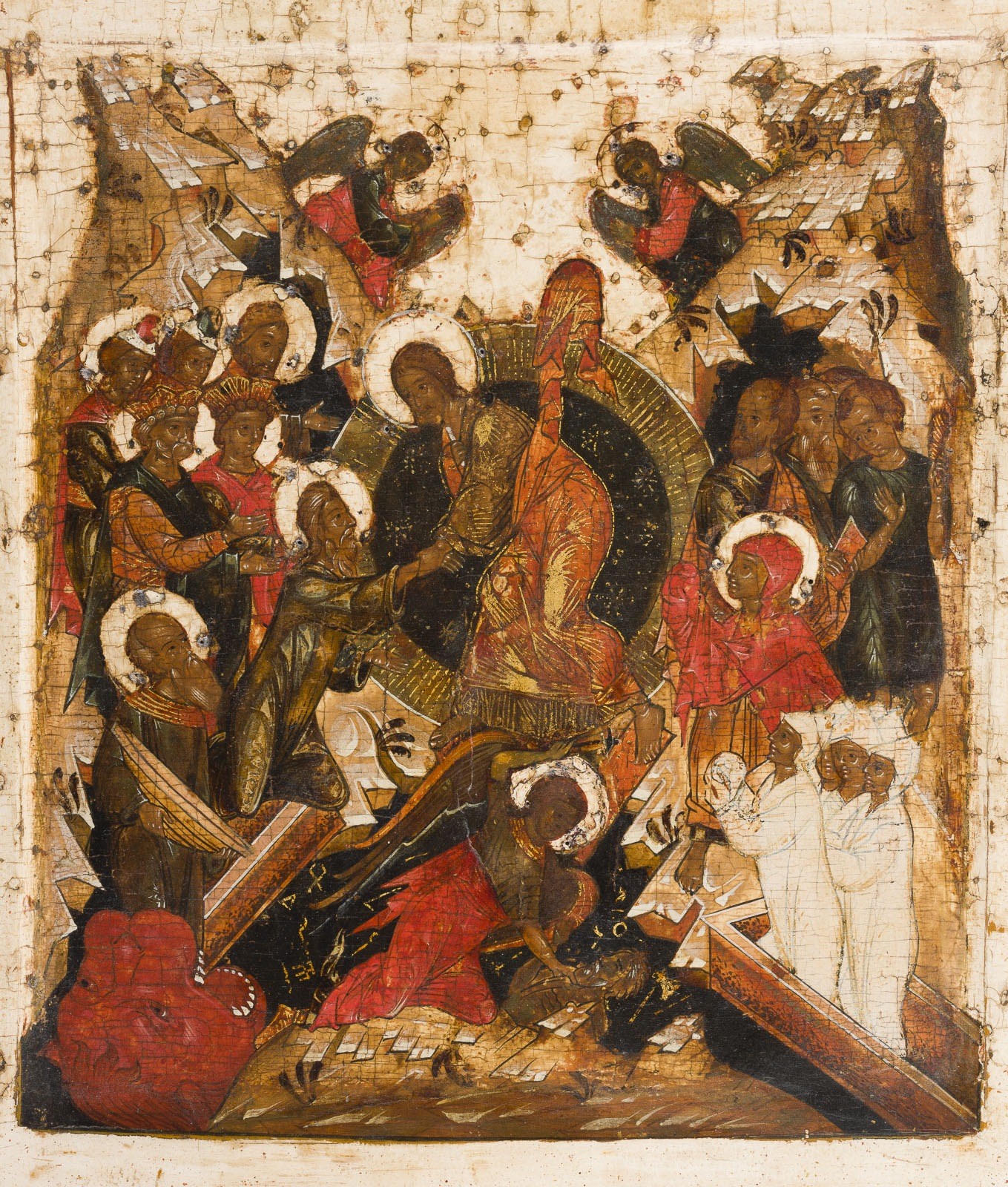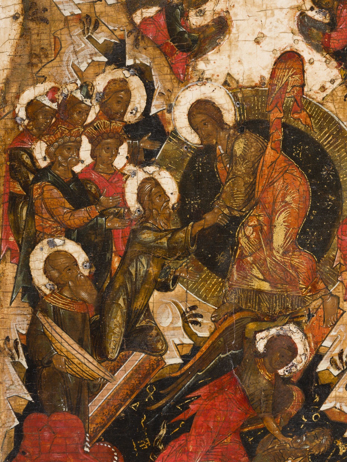 SEHR FEINE IKONE MIT DER HÖLLENFAHRT CHRISTI UND DER BEFREIUNG DER VORVÄTER AUS DEM HADES