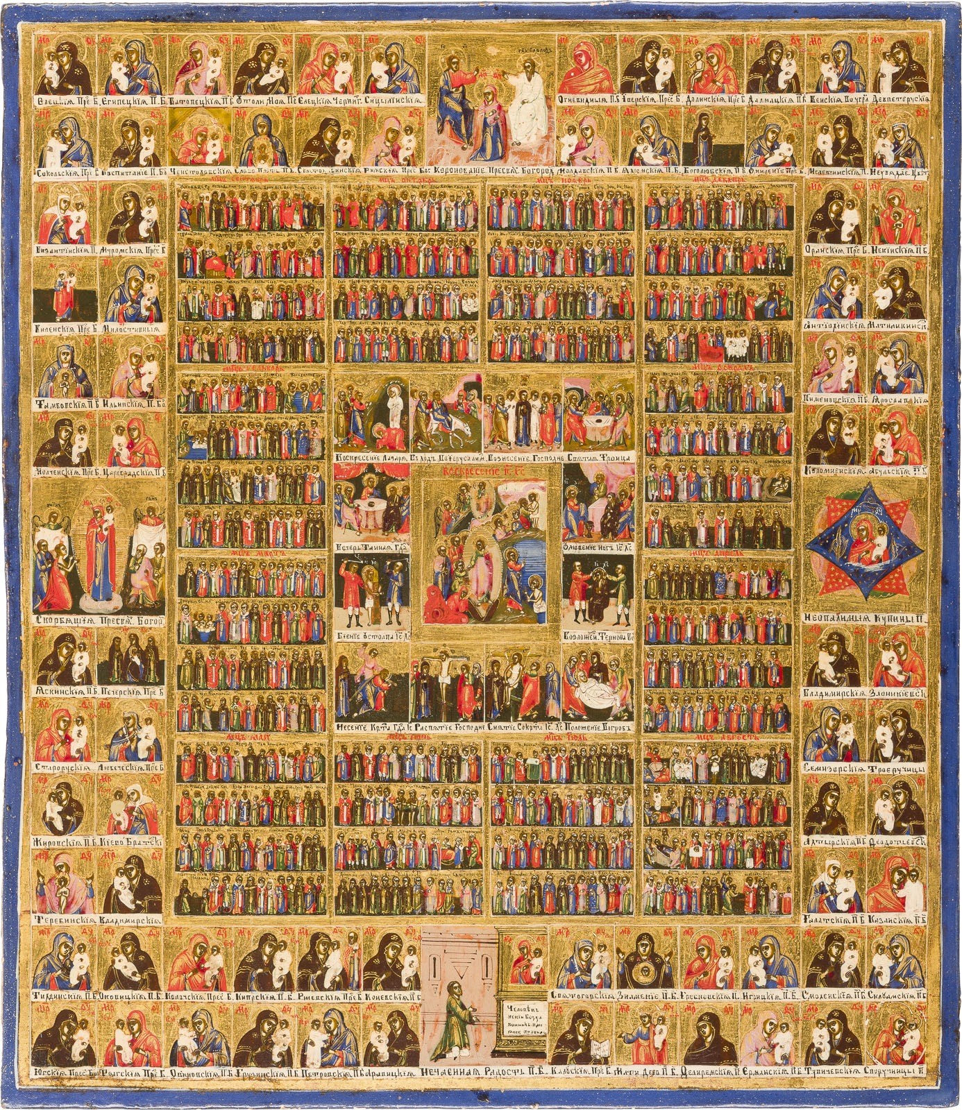 SEHR FEINE JAHRESIKONE MIT DER PASSION CHRISTI UND GNADENBILDERN DER GOTTESMUTTER