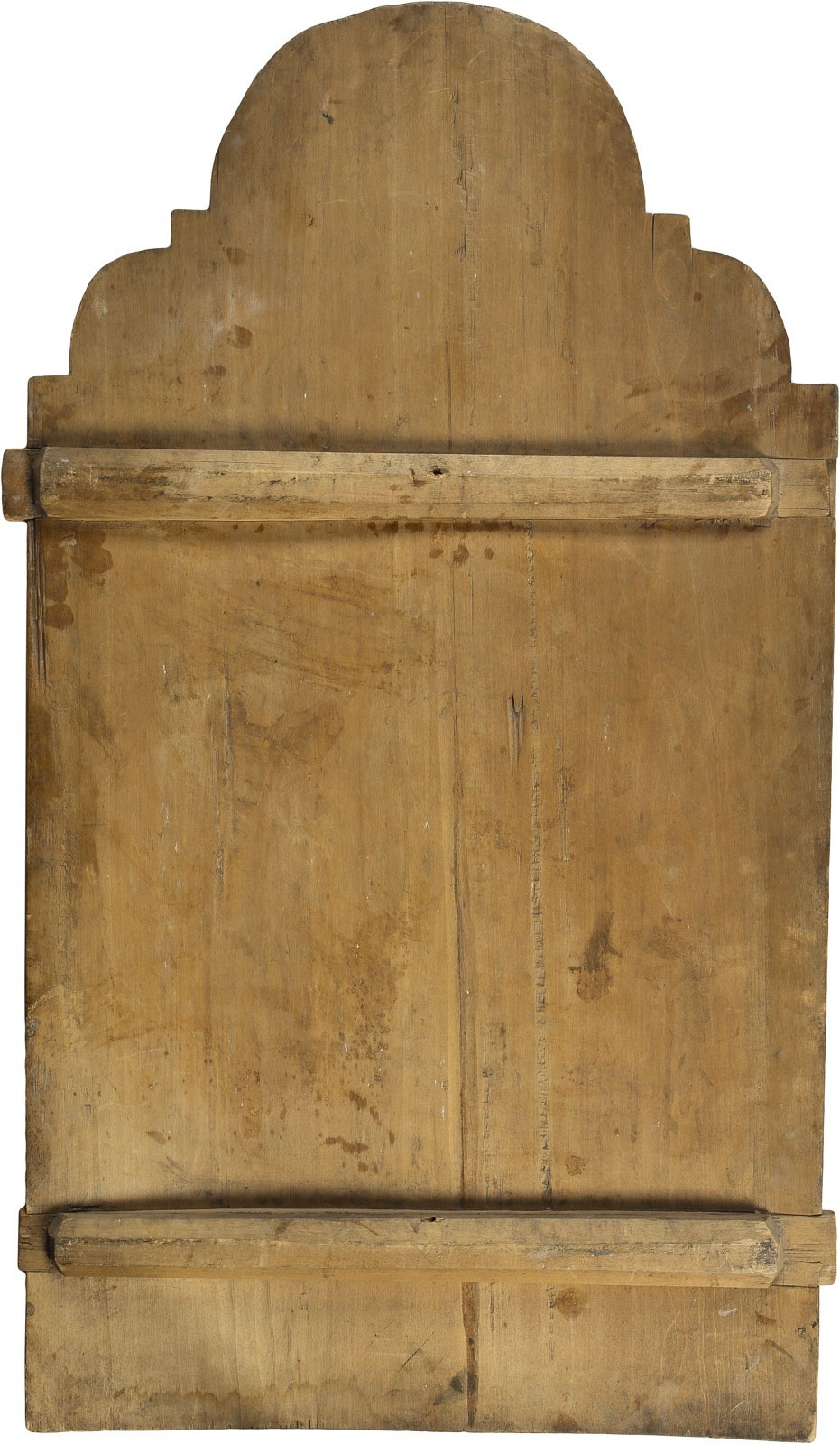 Holztafel mit Rückseiten-Sponki. Eitempera auf Kreidegrund, Nimben vergoldet. 90 x 51,5 cm. Die Darstellung folgt der klassischen russischen Ikonographie, kombiniert jedoch Elemente