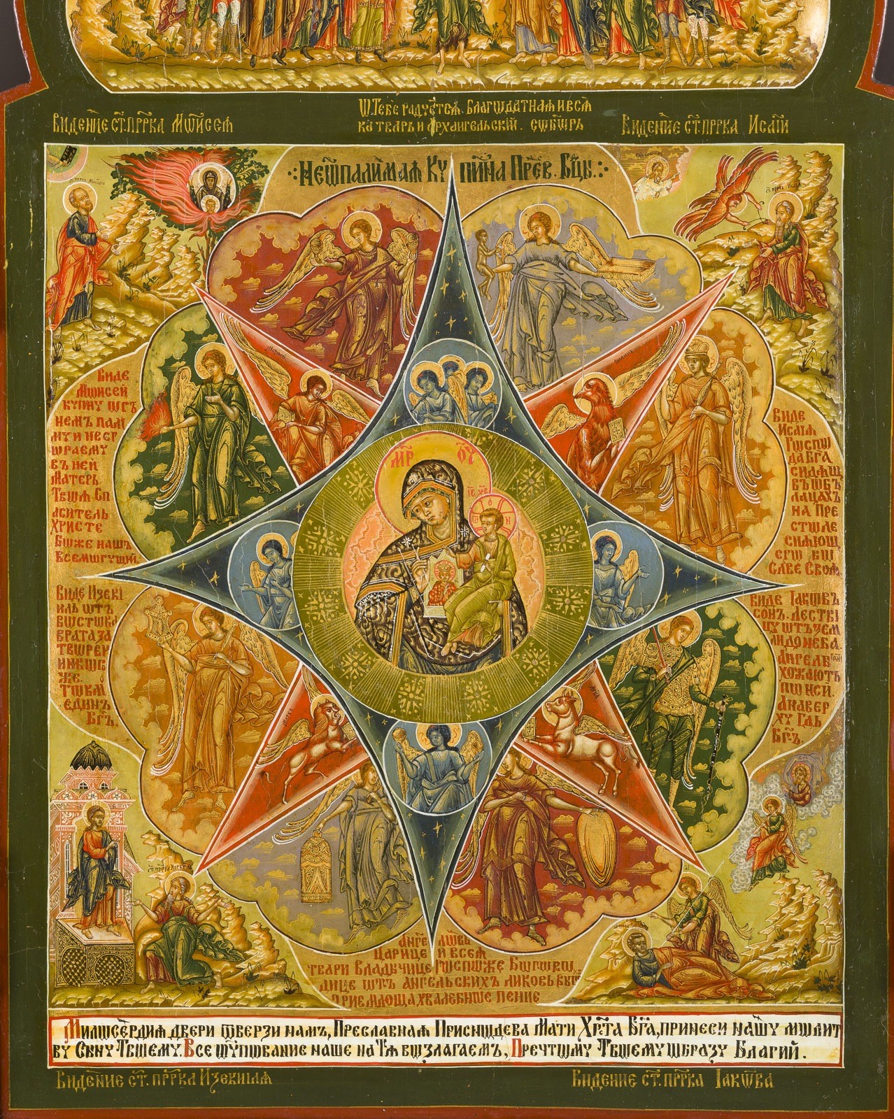 SEHR FEINES TRIPTYCHON MIT DER GOTTESMUTTER 'UNVERBRENNBARER DORNBUSCH'