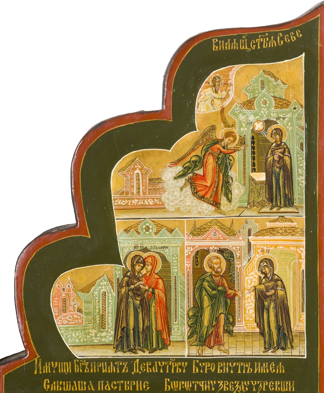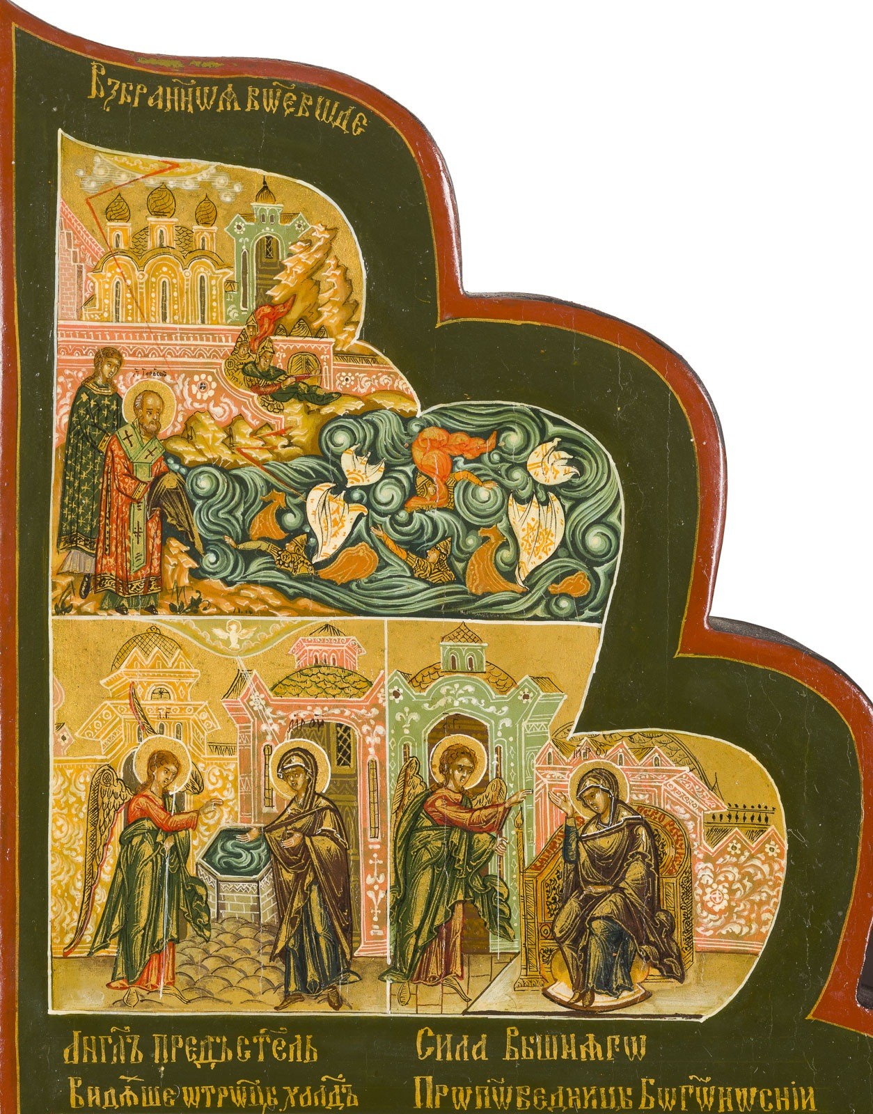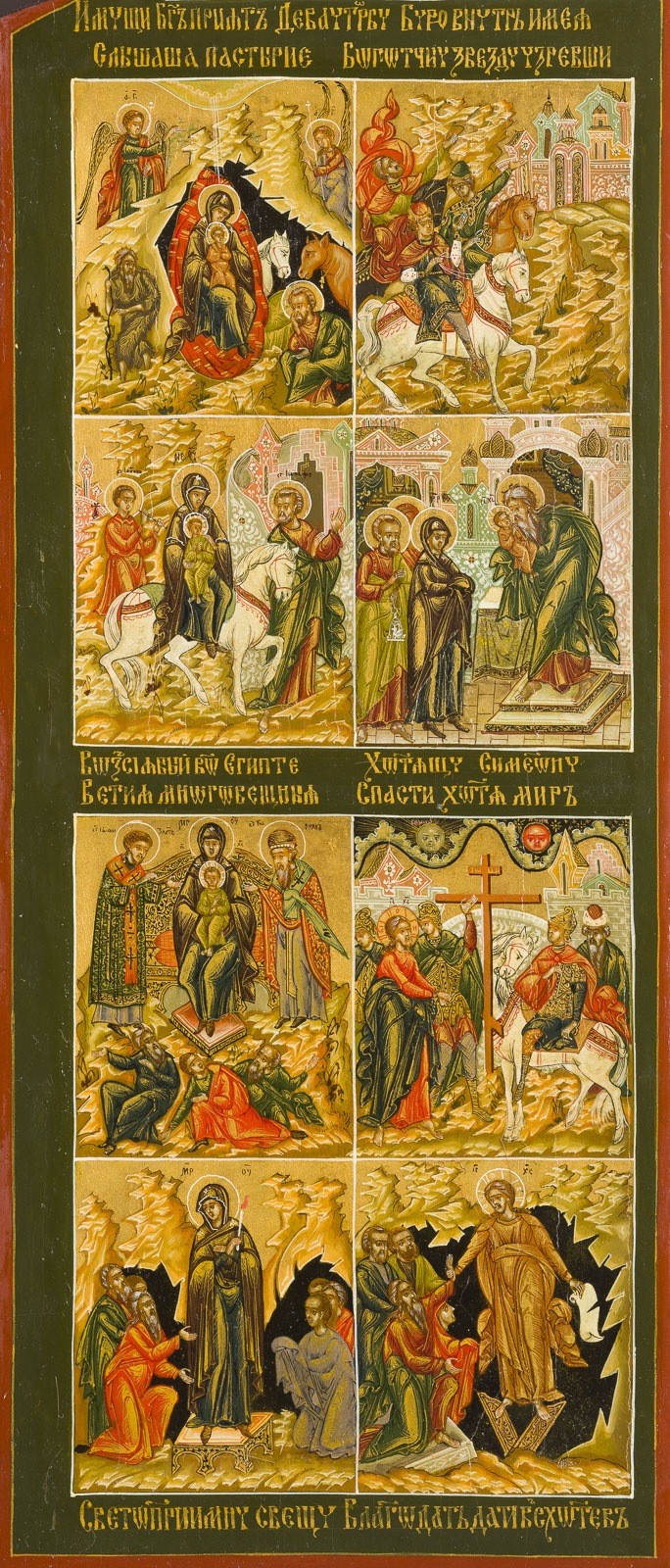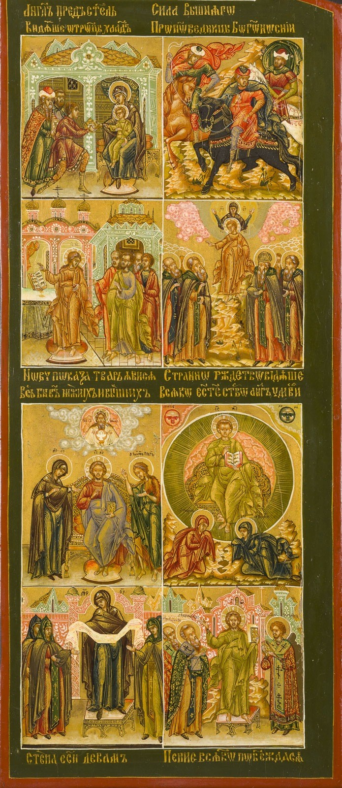 Holztafeln mit Kowtscheg. Eitempera auf Kreidegrund, Nimben und Hintergrund vergoldet. 41,2 x 49,8 cm (geöffnet).