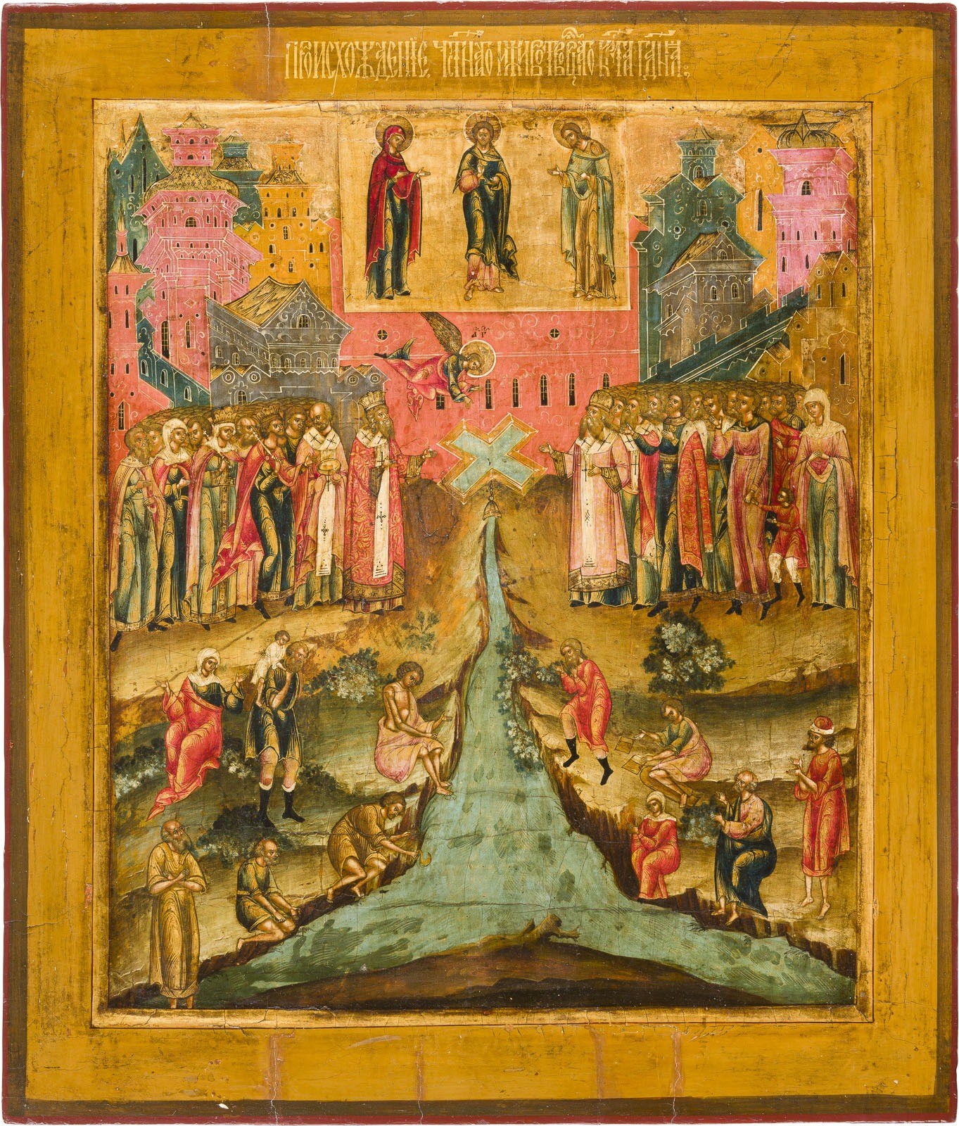 SEHR SELTENE UND FEINE IKONE MIT DER AUSTRAGUNG DES HEILIGEN KREUZES
