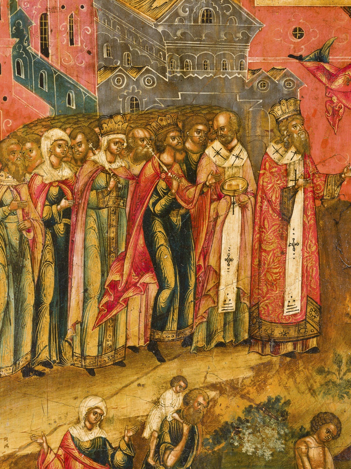 wundertätige Heilung zu einer erzählerisch reichen Szene. Die Ikone zeichnet sich durch