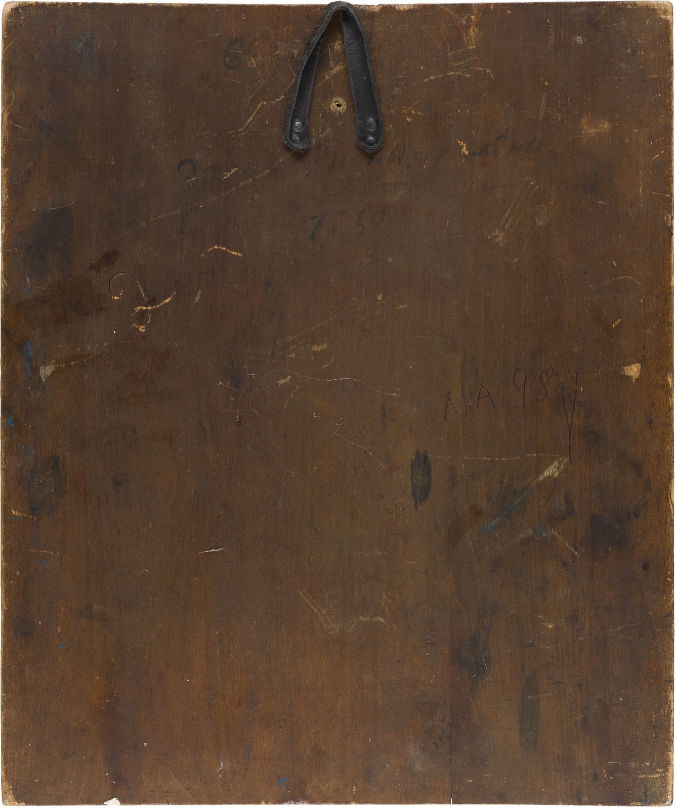 Verbund zweier Bretter mit zwei Stirnseiten-Sponki. Eitempera auf Kreidegrund, Goldgrund, Nimben und Rand ornamental punziert. 35,5 x 29,9 cm. Verso kyrillische Aufschrift mit Datierung '1850'. Punktuelle Einstimmungen.