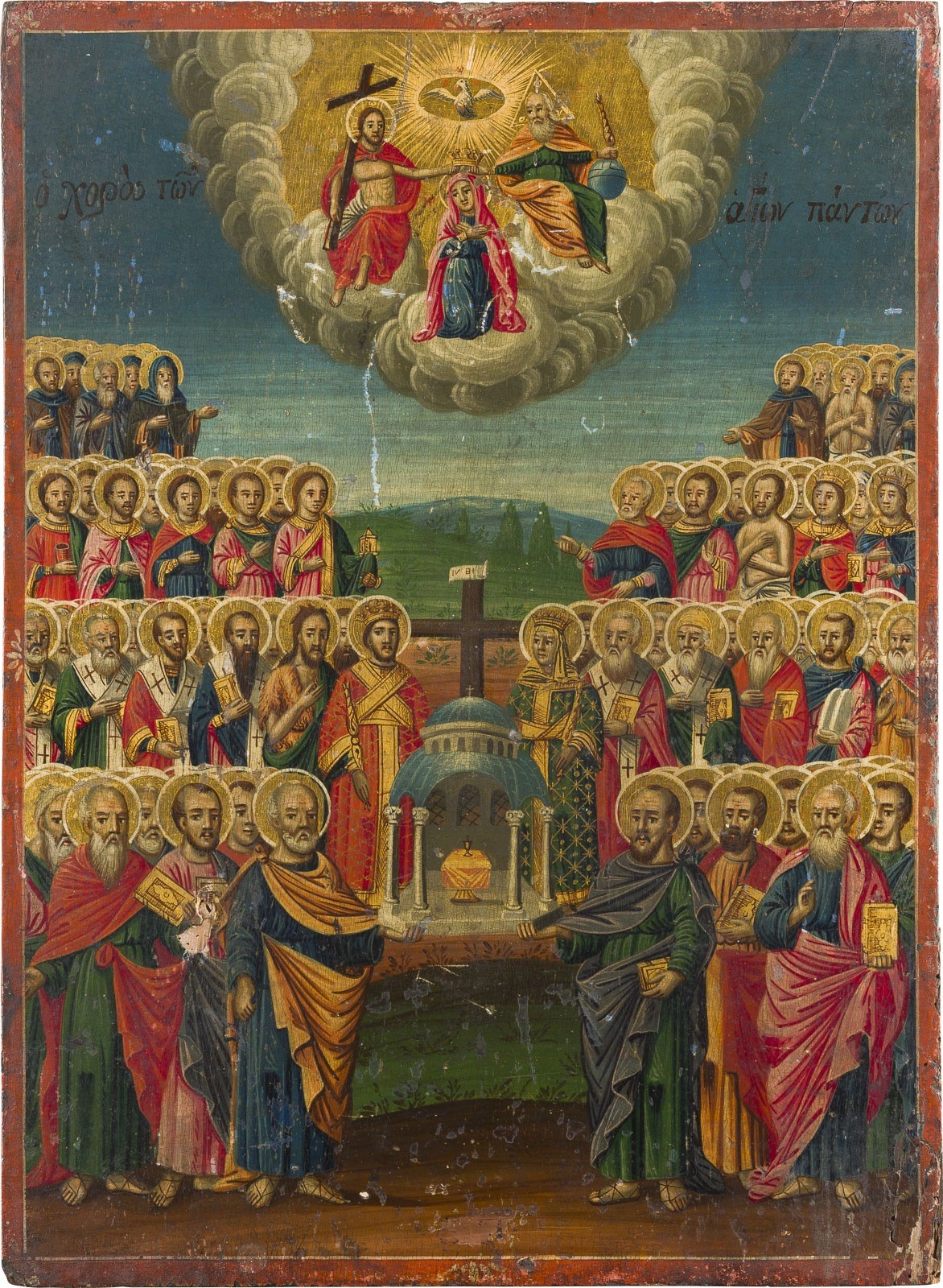 SELTENE IKONE 'ALLERHEILIGEN' MIT DER KRÖNUNG DER GOTTESMUTTER