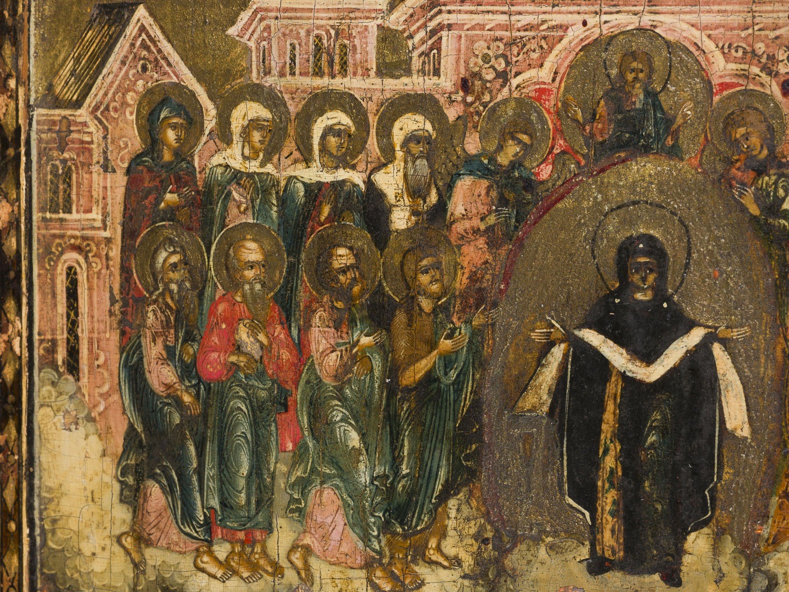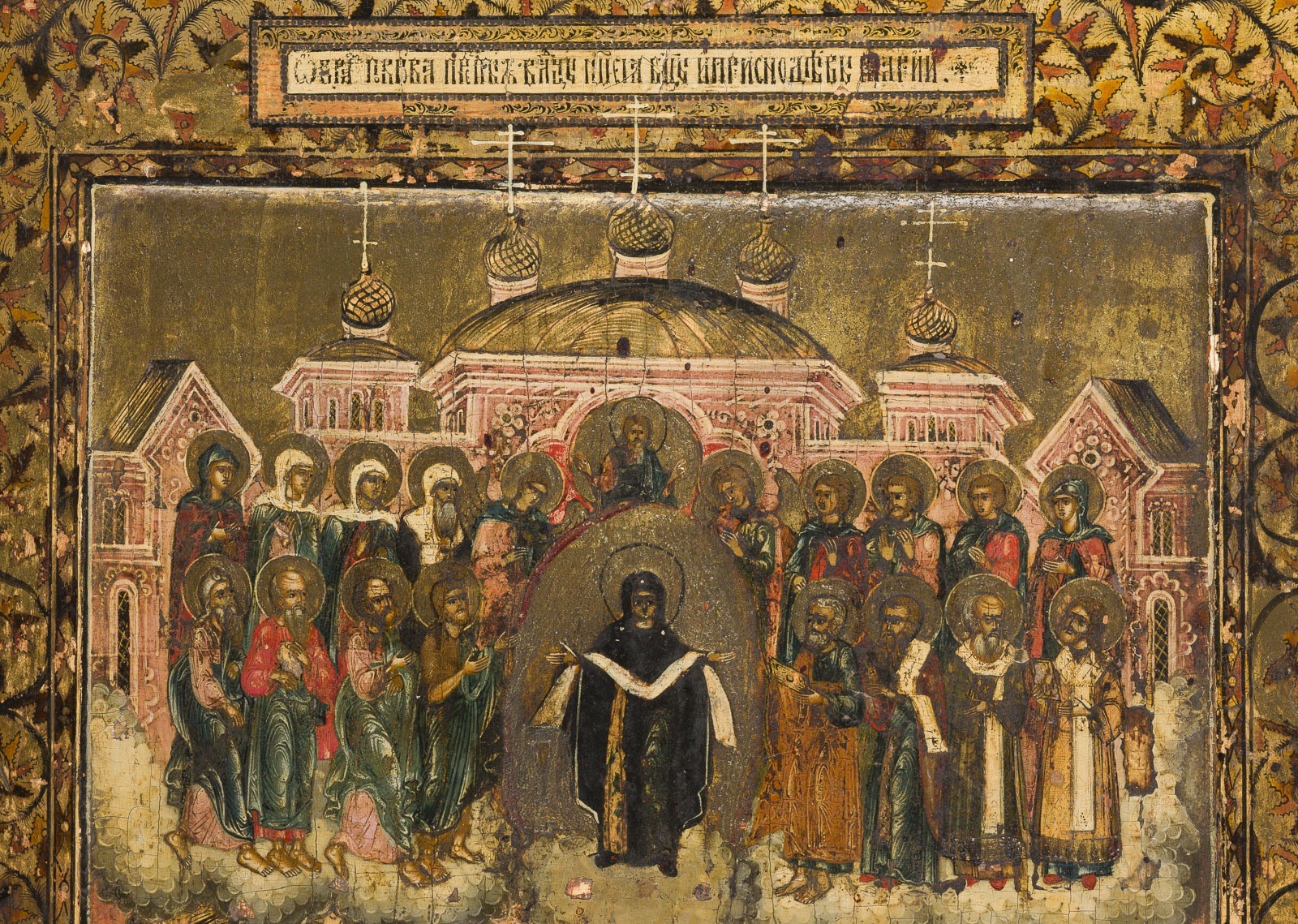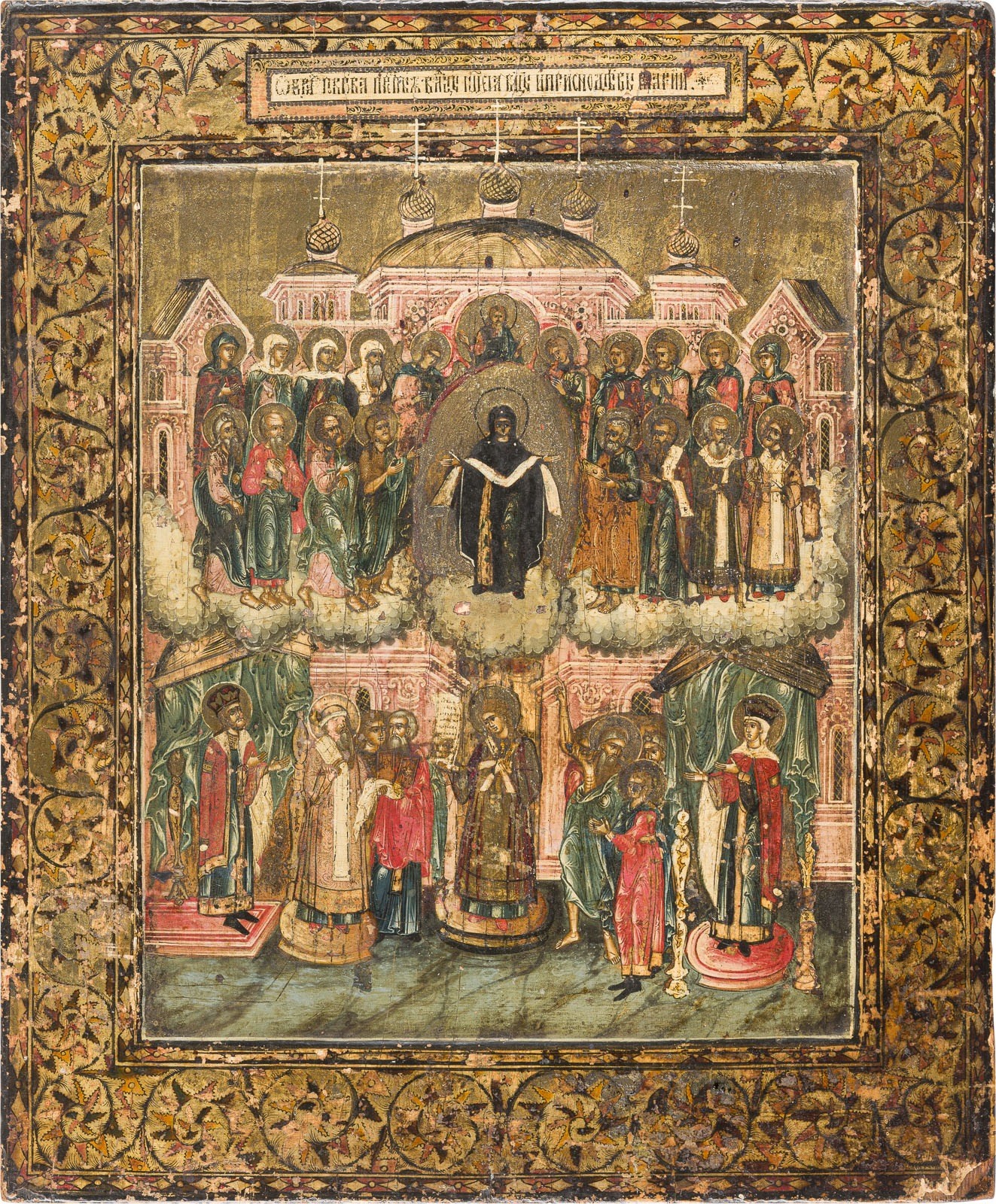 SELTENE IKONE MIT DEM SCHLEIERWUNDER DER GOTTESMUTTER (POKROW)