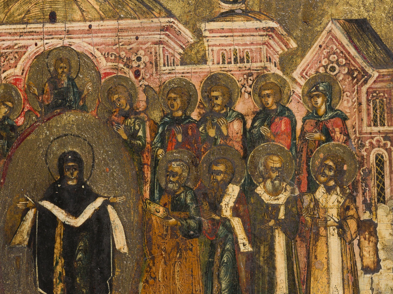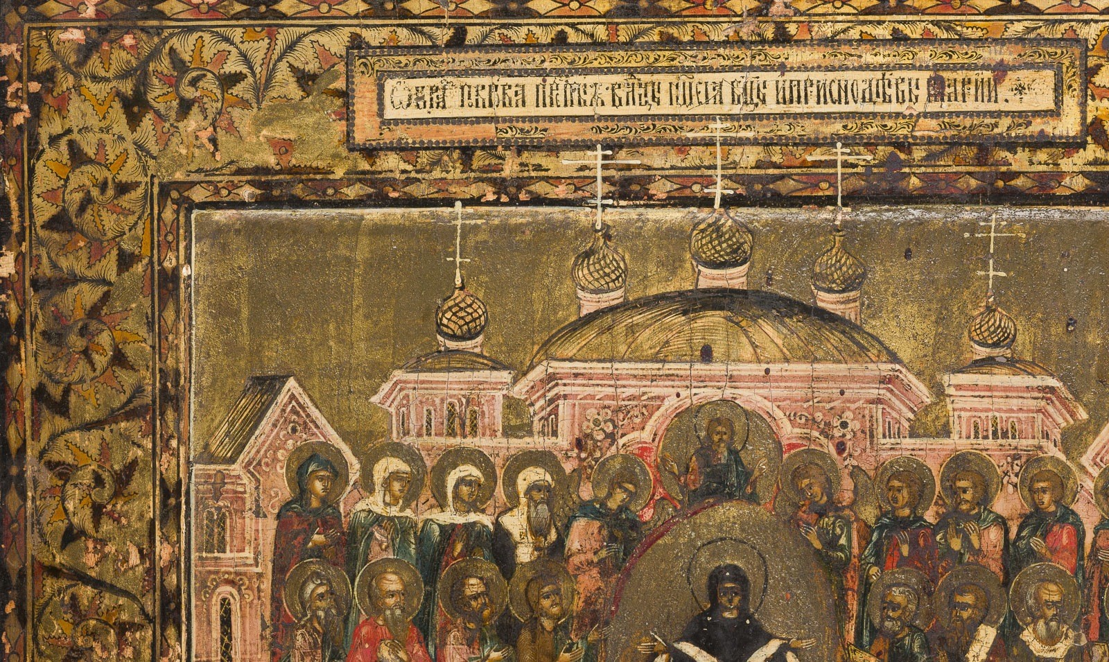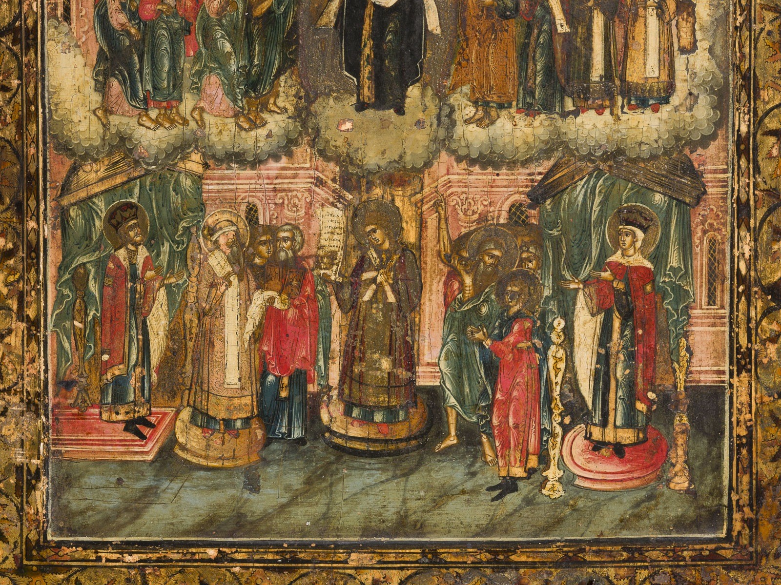 SELTENE IKONE MIT DEM SCHLEIERWUNDER DER GOTTESMUTTER (POKROW)