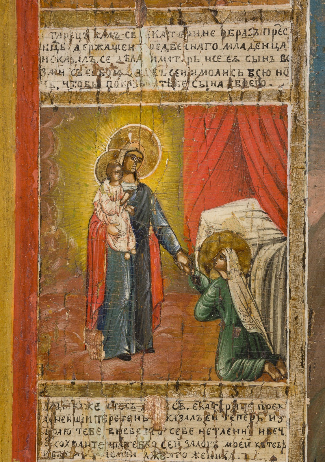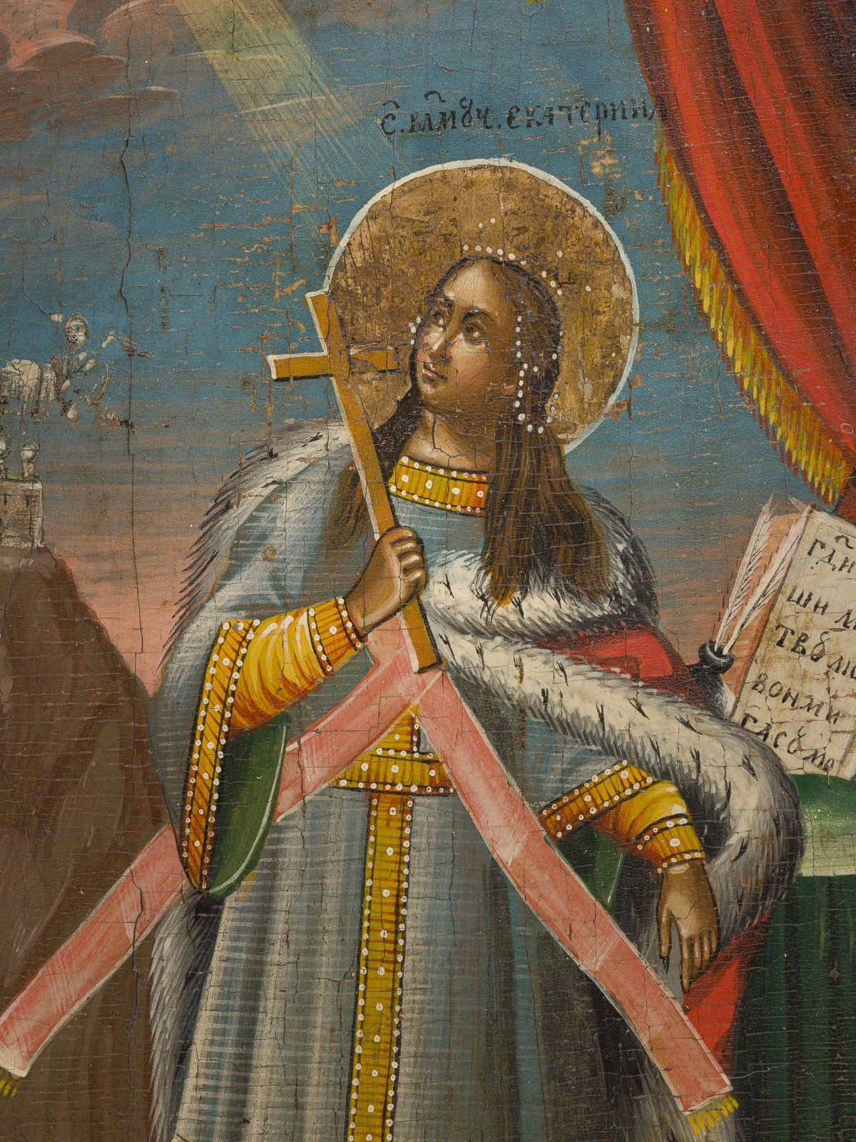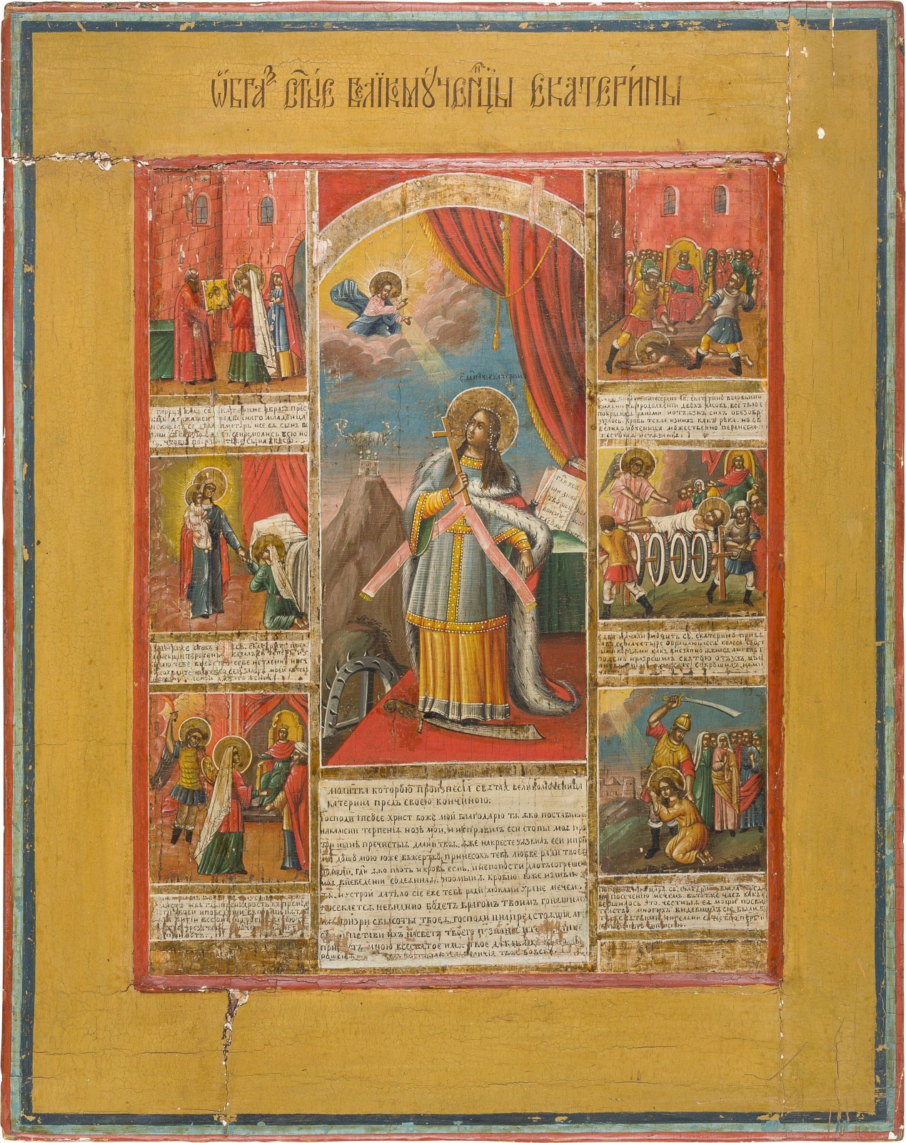 SELTENE UND GROSSFORMATIGE VITA-IKONE MIT DER HEILIGEN KATHARINA